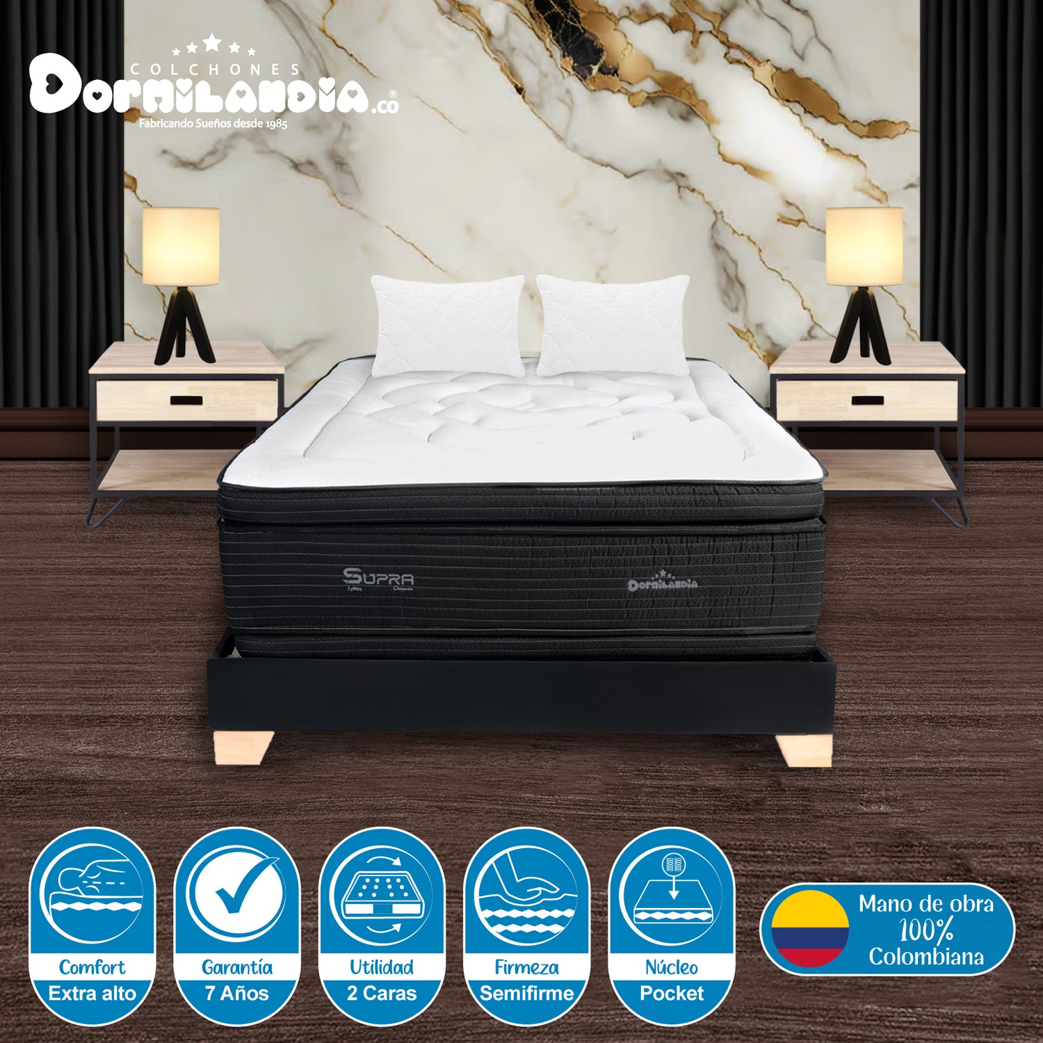 Combo Base Cama y Colchón Supra Negro King 200 X 200 Cm Firmeza Medio Doble Faz