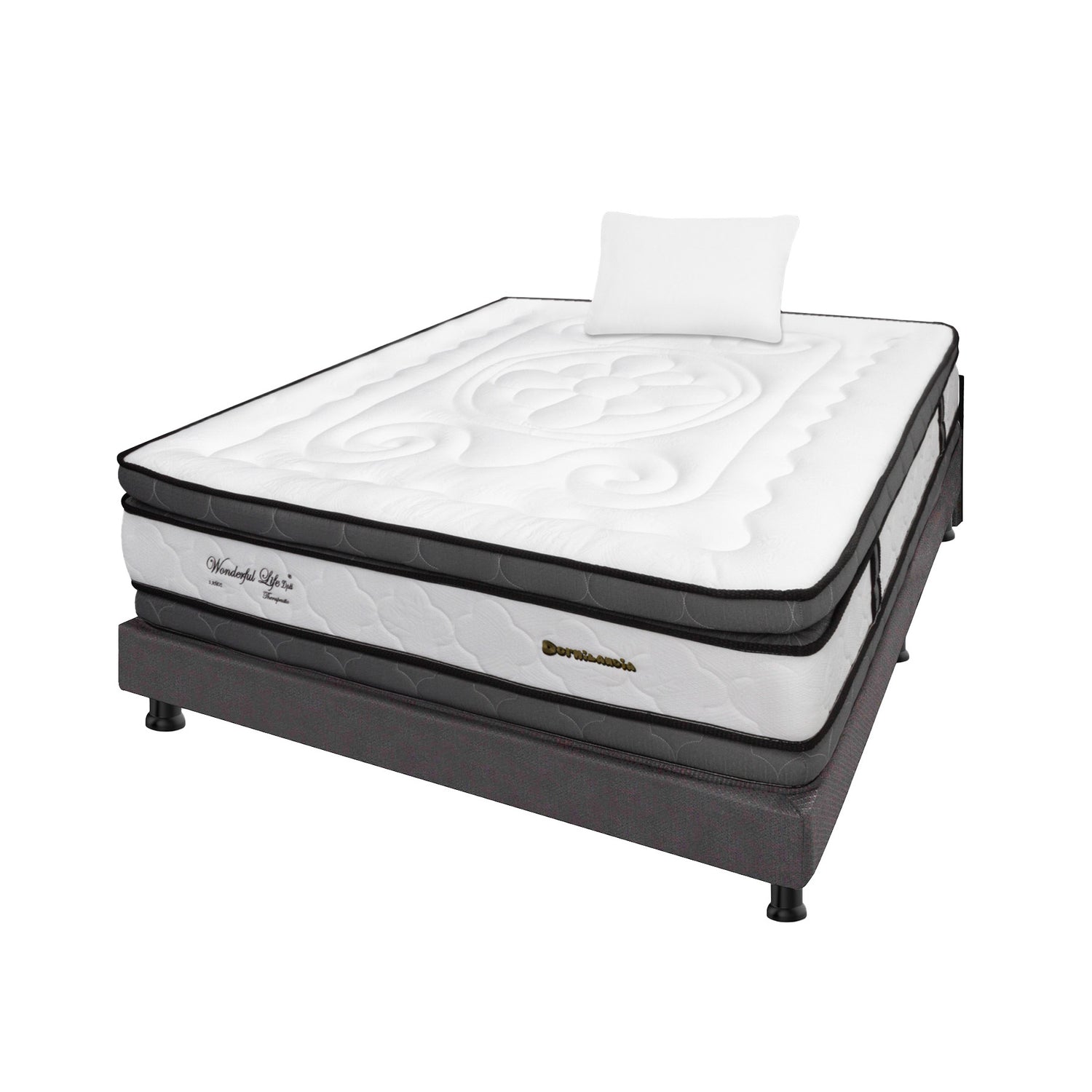 ¡Descansa en el combo perfecto con Wonderful DP! Este combo incluye un colchón con núcleo de resorte tipo bonell para un soporte óptimo y duradero. Además, cuenta con 2 superficies para voltear y rotar el colchón, prolongando su vida útil. Su tela tejido Jacquard con alto contenido de algodón regula la temperatura externa, mientras que su diseño moderno y tecnología high confort en súper acolchado de alto relieve te brindan una suave sensación al tacto. El combo también incluye una base cama y almohada para un descanso completo. ¡No esperes más y llévate este combo premium a un precio increíble!