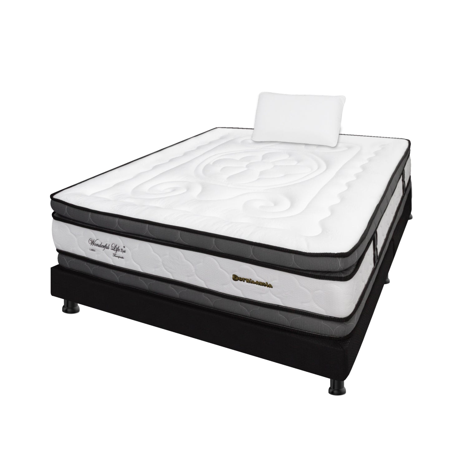 Combo Base Cama y Colchón Wonderful Blanco y Negro Sencillo 100 X 190 Cm Firmeza Medio Doble Faz