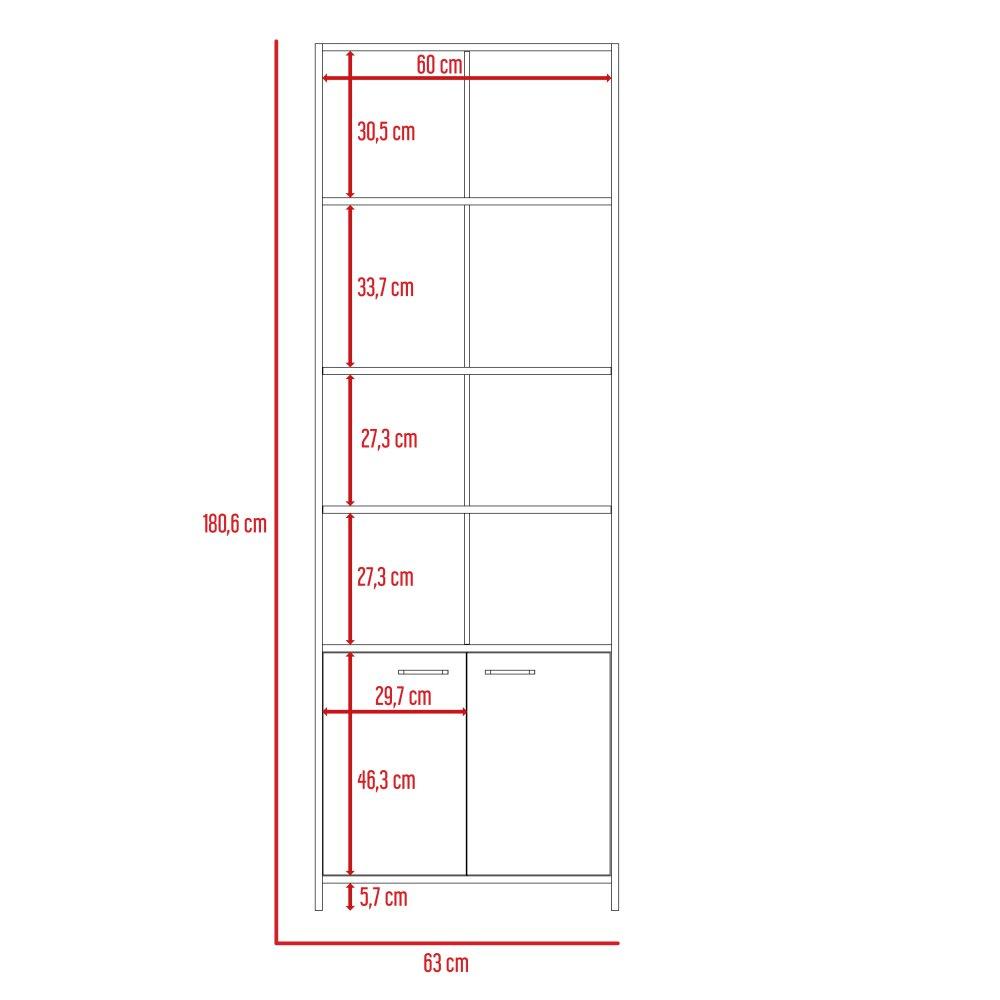 Biblioteca Lisa Duna 63x180cm con Cuatro Compartimientos y con Un Cajón