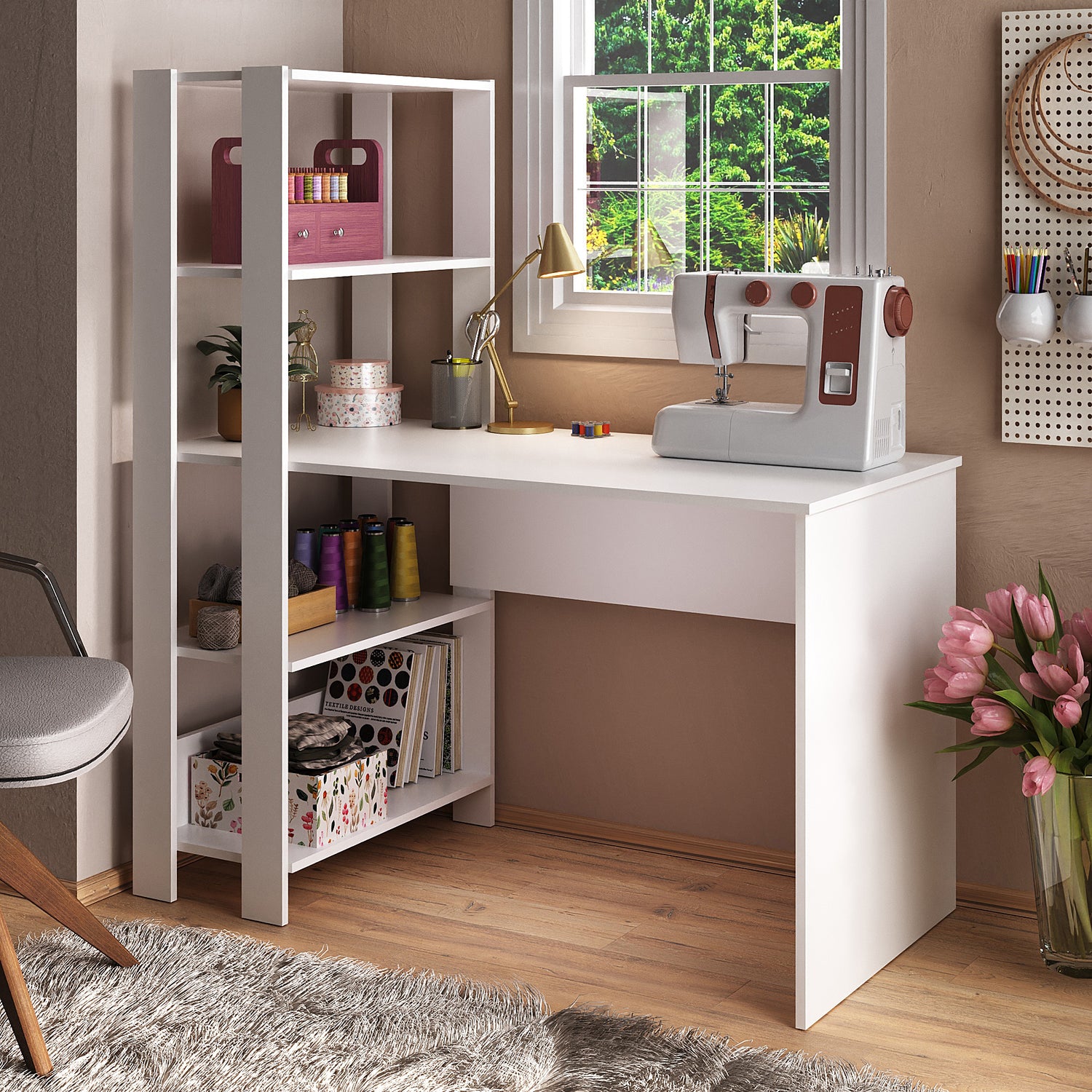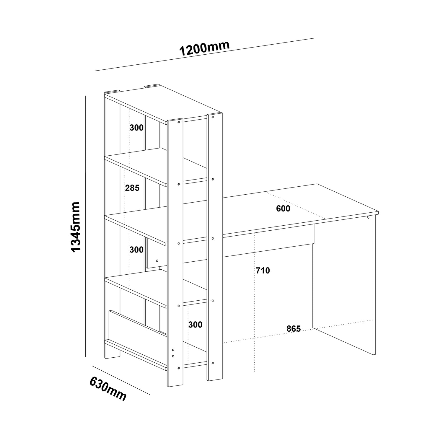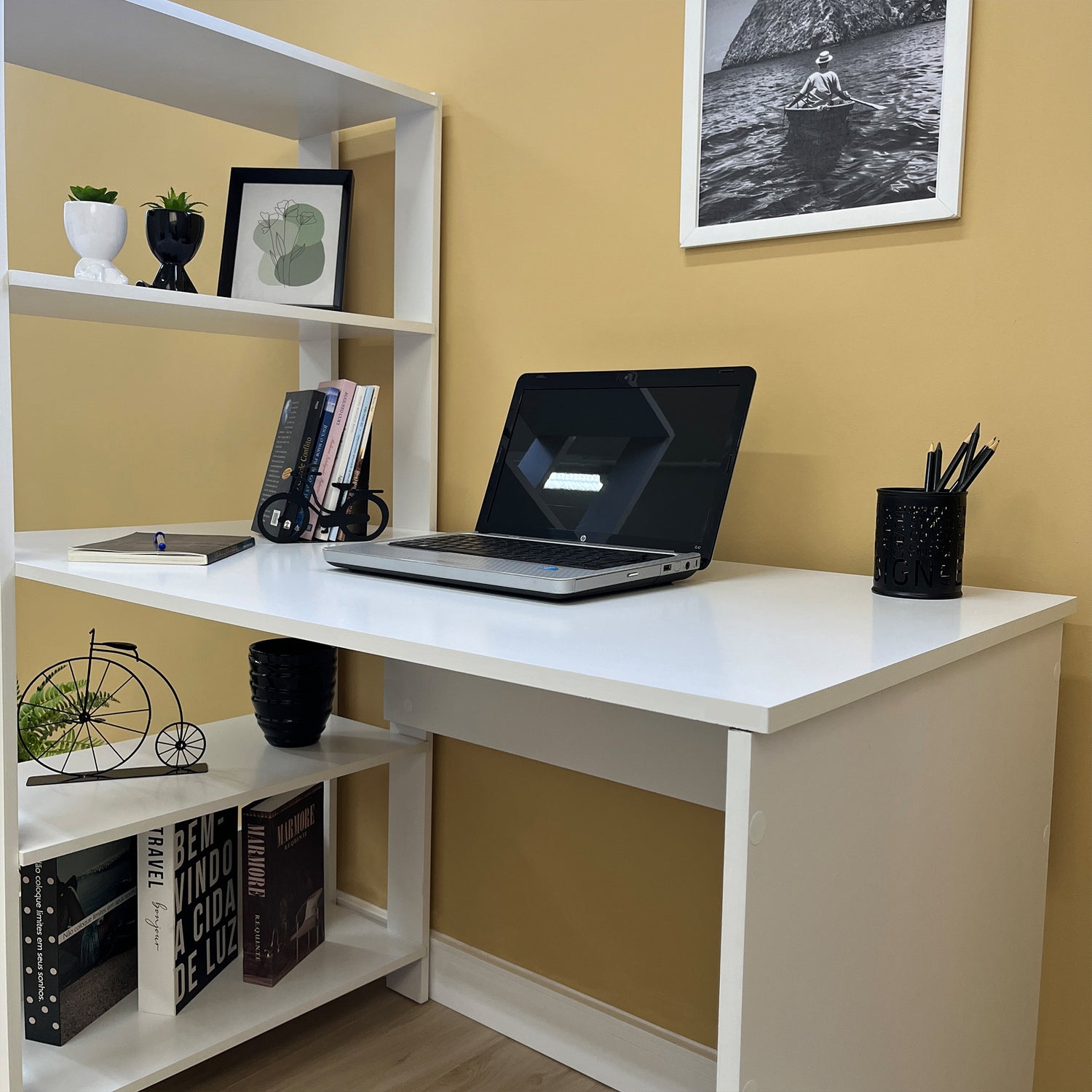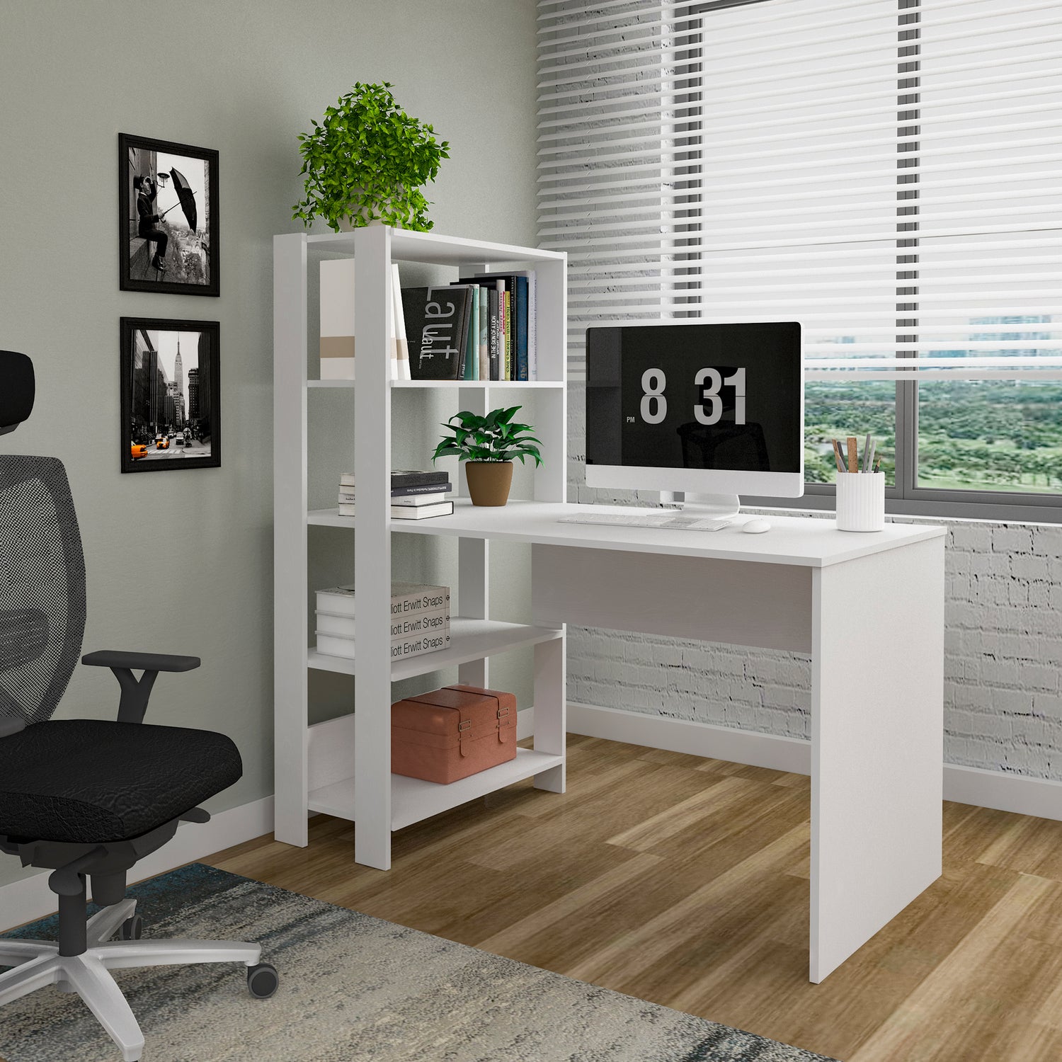 Escritorio con Biblioteca Match Blanco 120x134cm con Tres Repisas