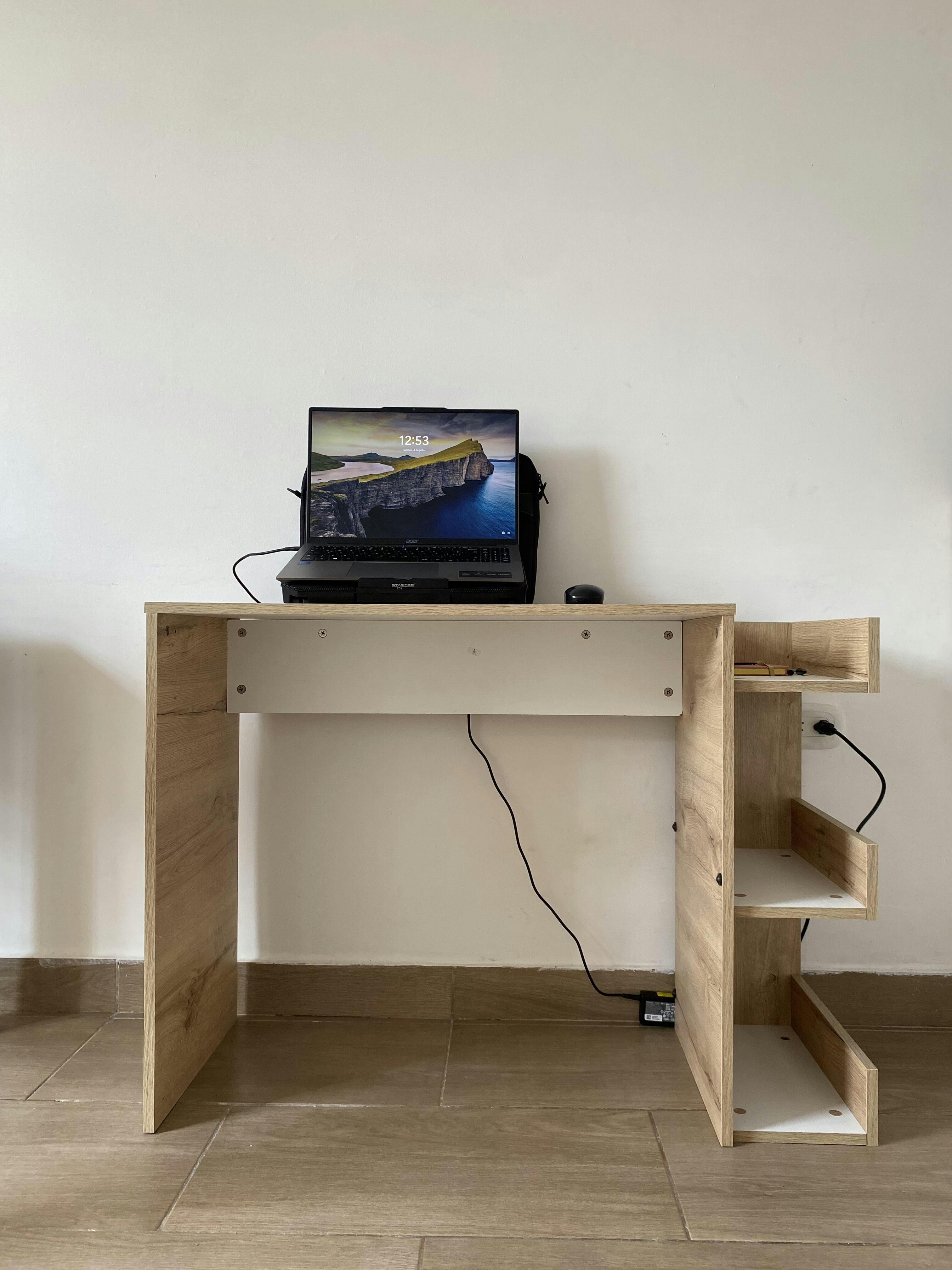 • Escritorio moderno en madera Shelf con opción de armado izquierda o derecha.