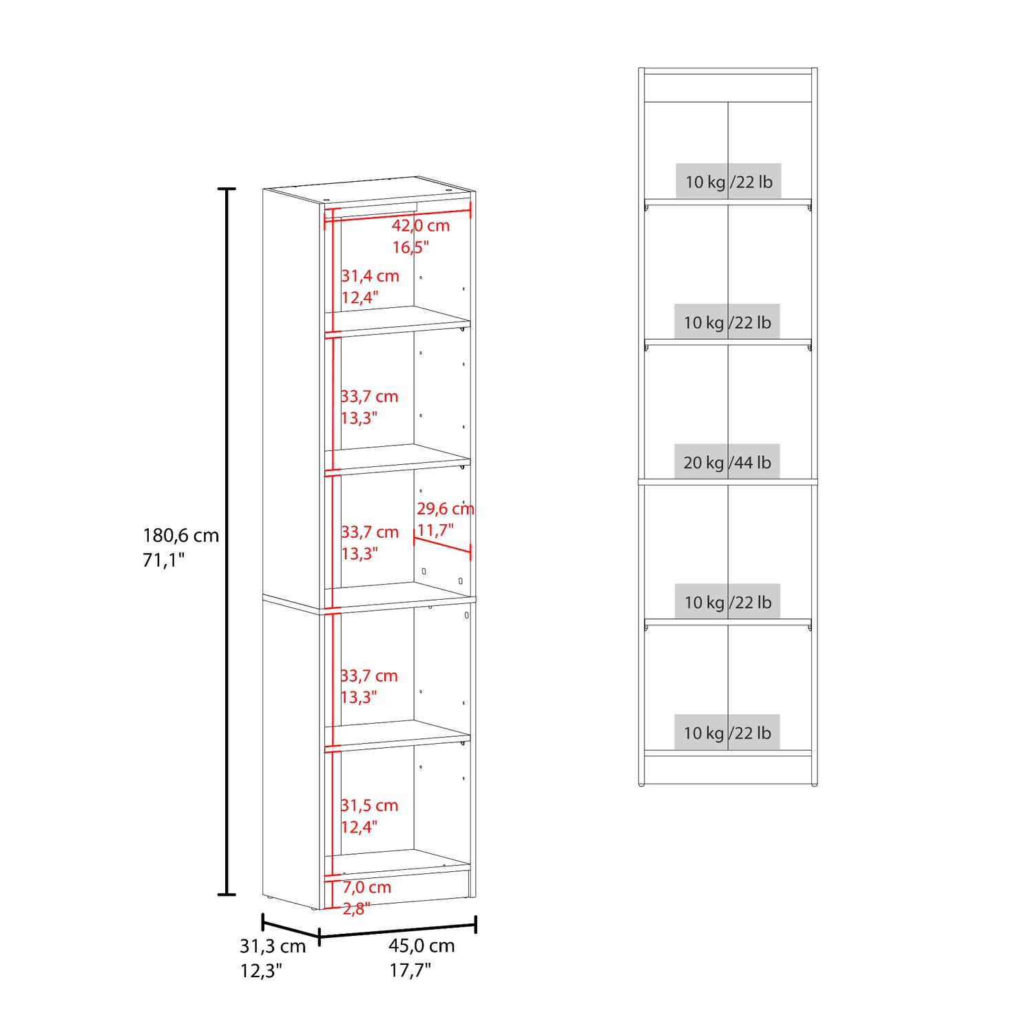 Estantería Home M5 Nogal y Negro 45x180.6cm Rectangular con Tres Entrepaños y Dos Puertas