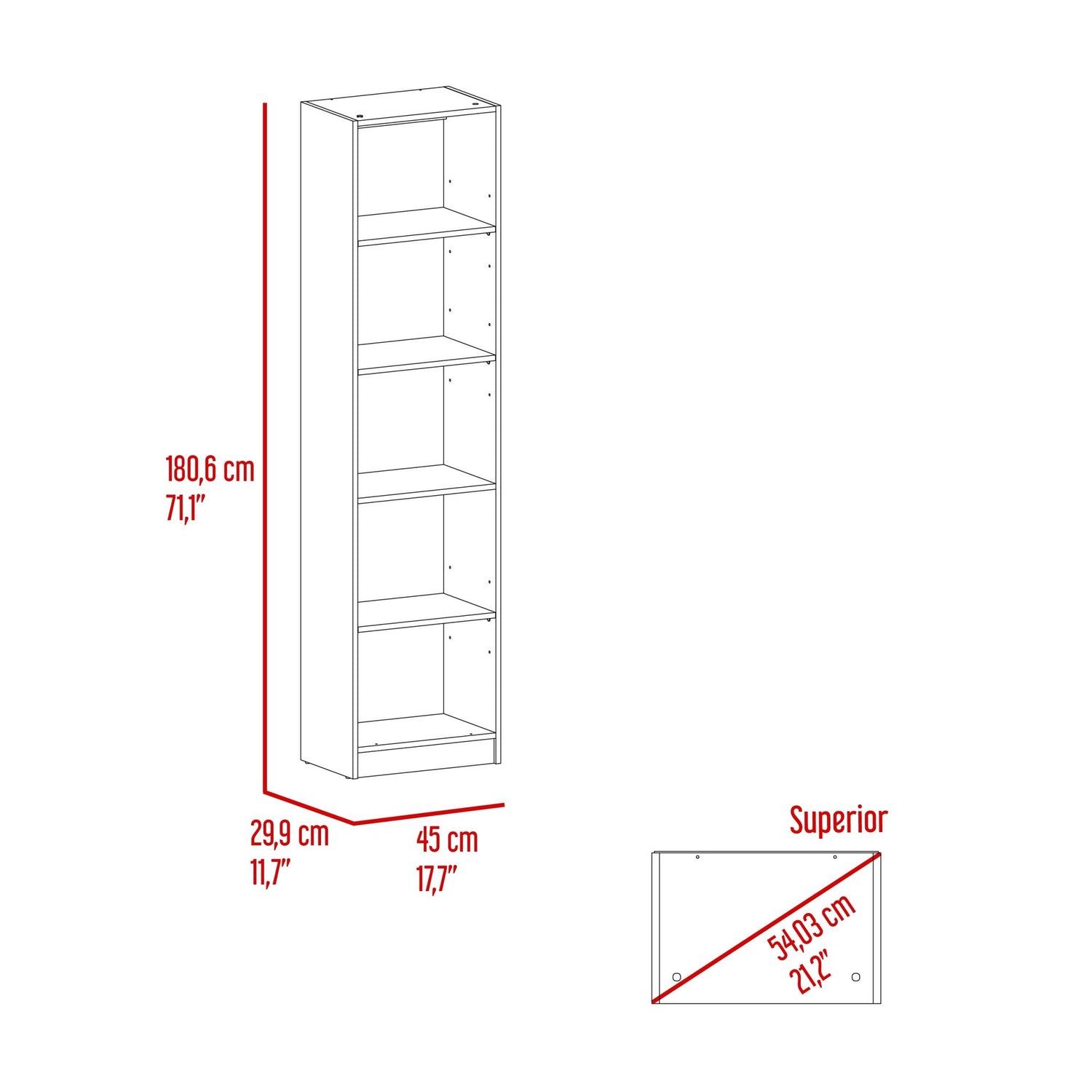 Estantería Home Wengue y Fresno 45x180.6cm Rectangular con Cinco Compartimientos y con Cuatro Entrepaños