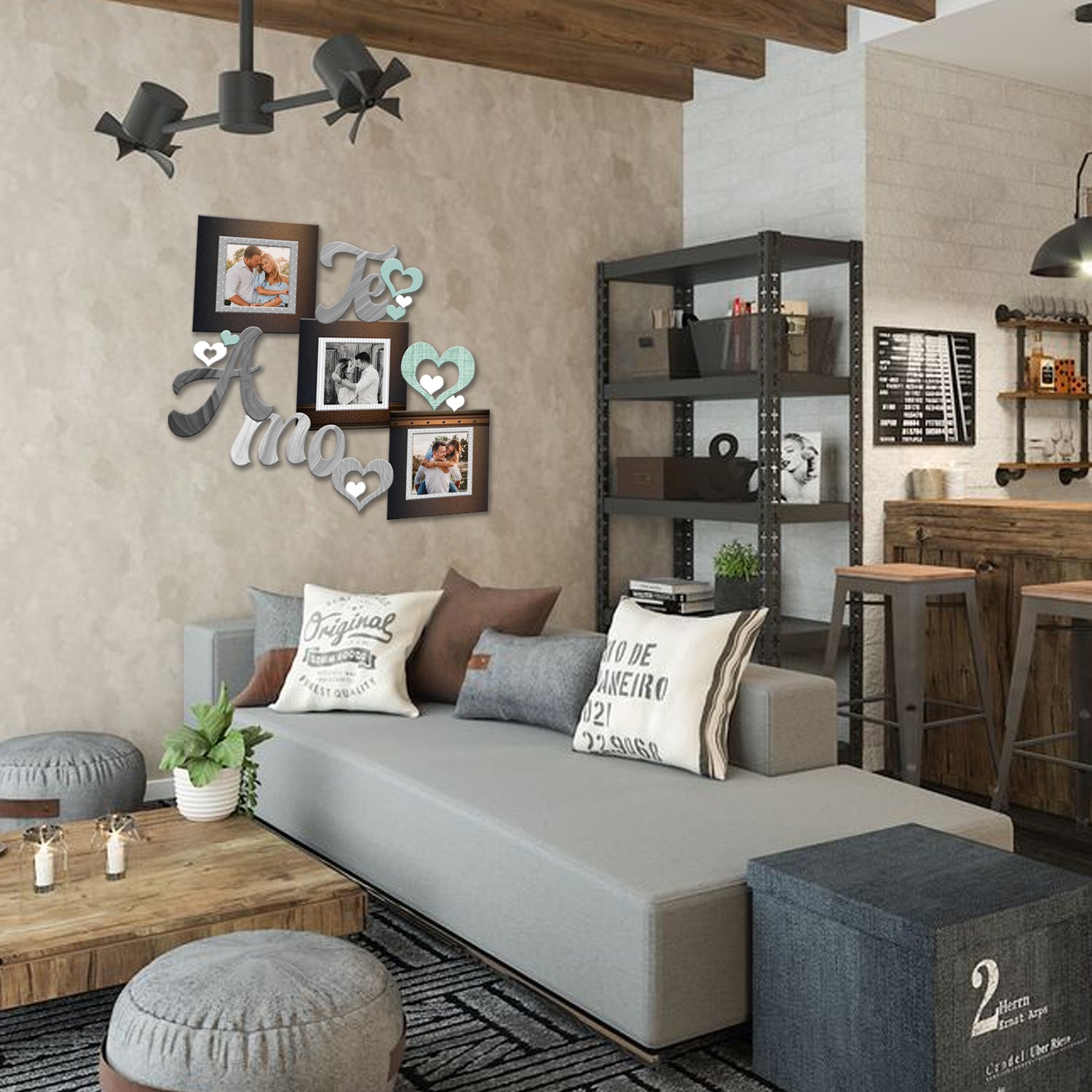 Cuadro Portarretrato Te Amo Cafe 45.5x43cm sin Marco y con Vidrio Protector