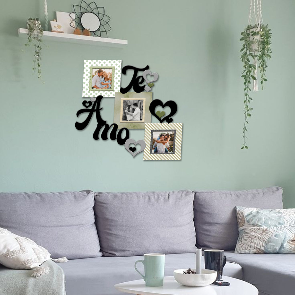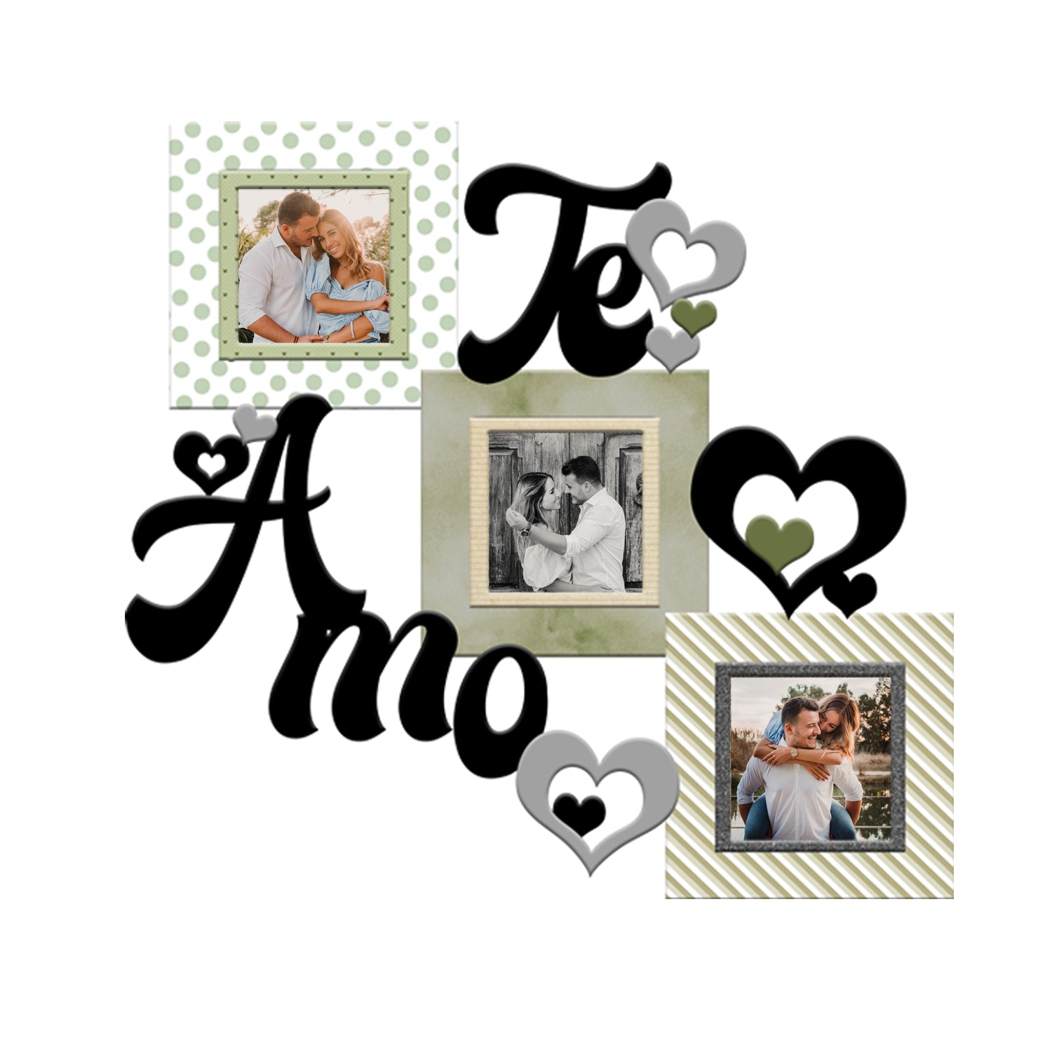 Cuadro Portarretrato Te Amo Verde 45.5x43cm sin Marco y con Vidrio Protector