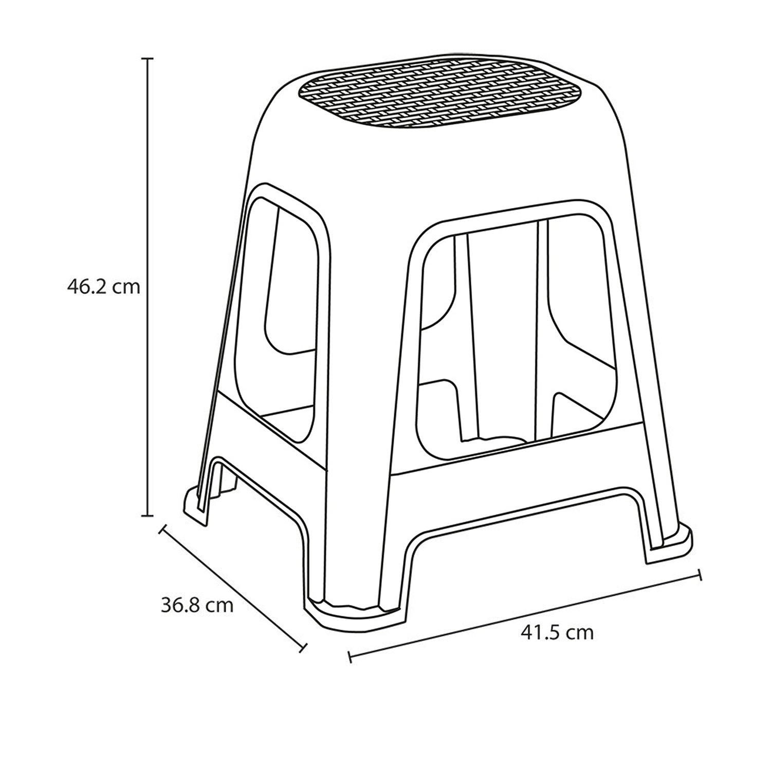 Debe colocarse sobre superficies firmes y niveladas para garantizar su estabilidad. No se debe exceder su capacidad de peso ni usarlo como escalera. Evita exponerlo al sol directo o fuentes de calor por periodos prolongados, ya que puede deformarse o perder color. Límpialo con agua y jabón suave, evitando detergentes abrasivos. Al guardarlo, mantenlo plegado en un lugar seco y ventilado para prevenir la acumulación de humedad, polvo o grietas en el material.