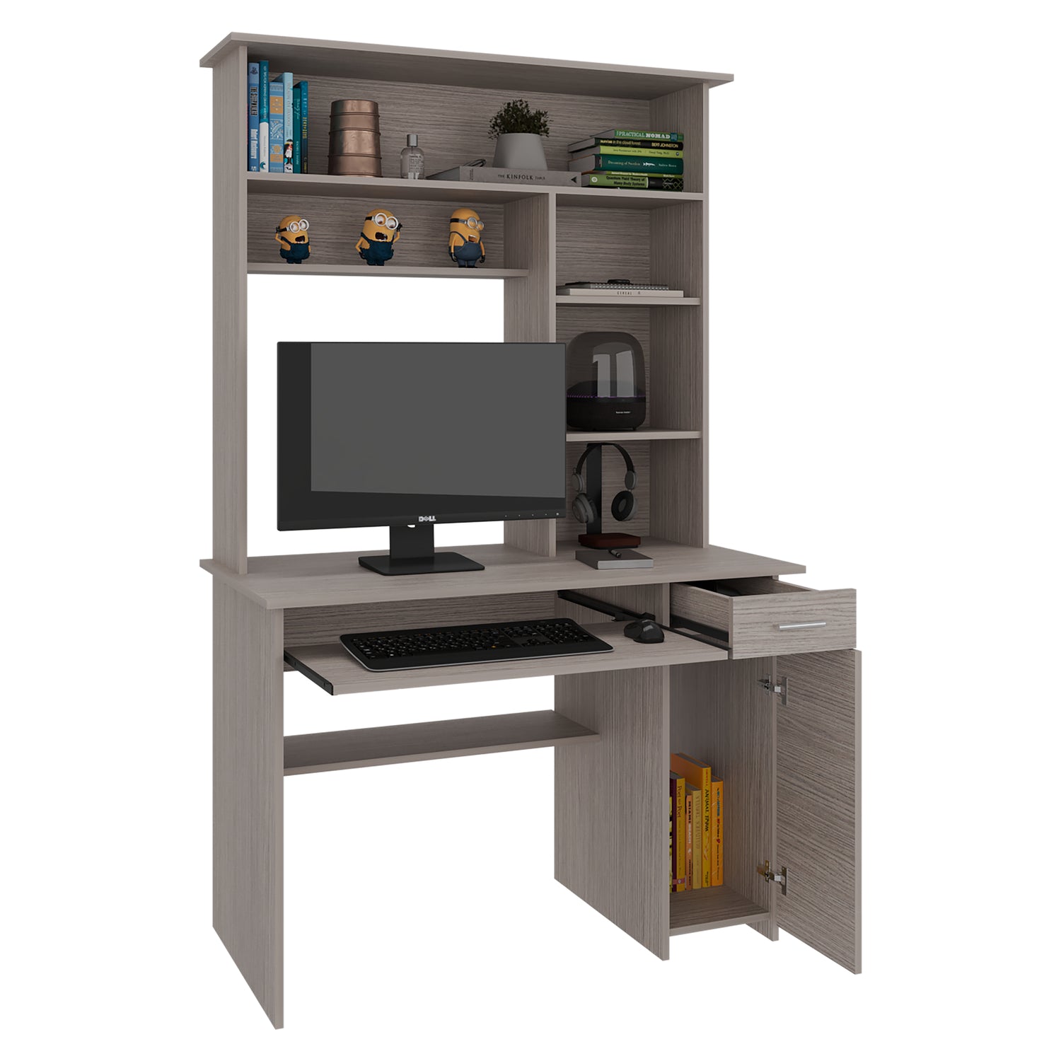 Centro de Computo Minka Gris Positano 110x180.7cm con Cajón y Entrepaños