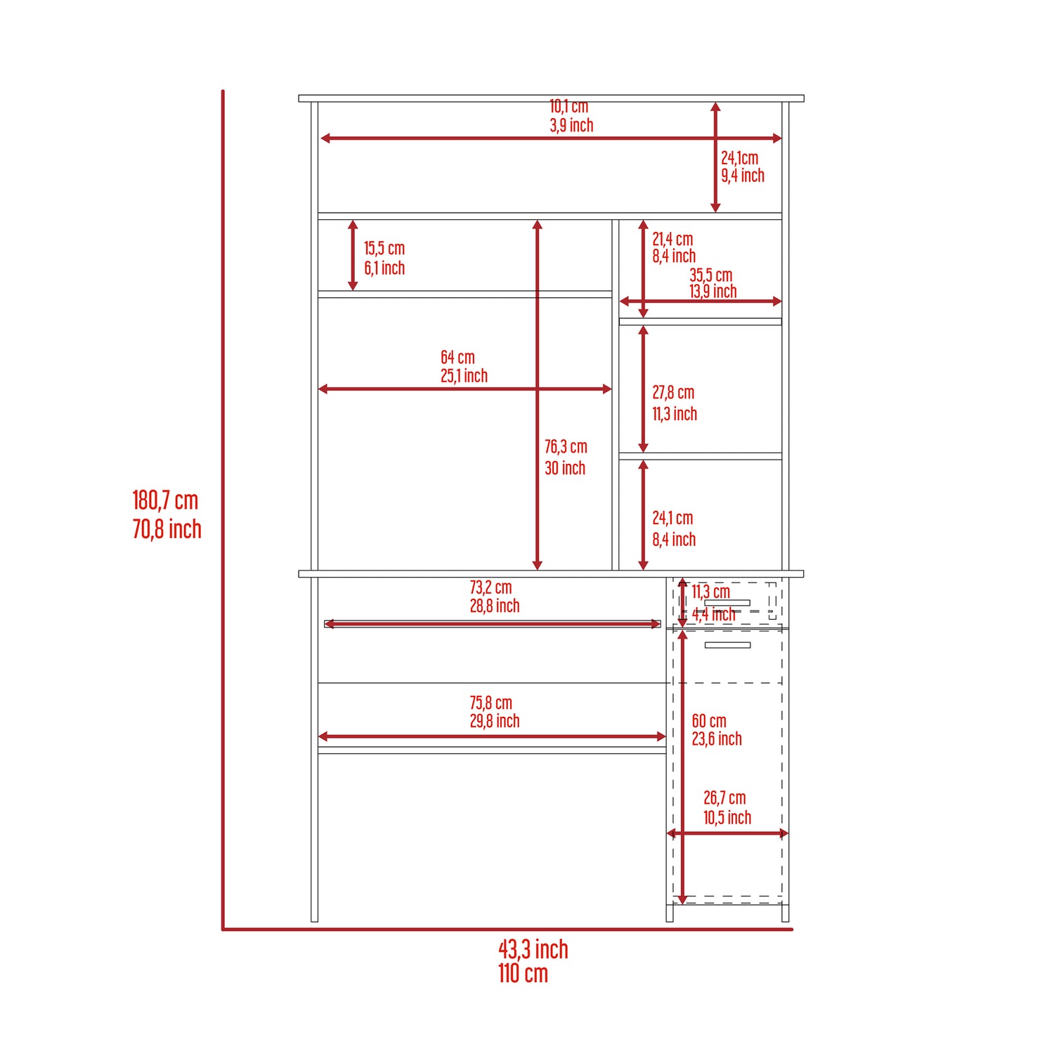 • Amplio espacio de almacenamiento para mantener tu área de trabajo organizada.