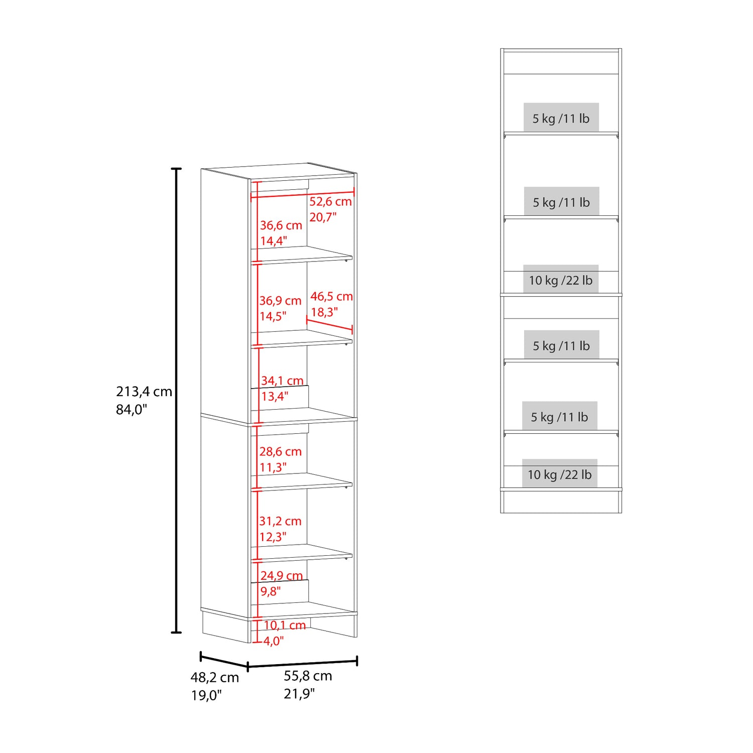 • Alto: 213.4 cm