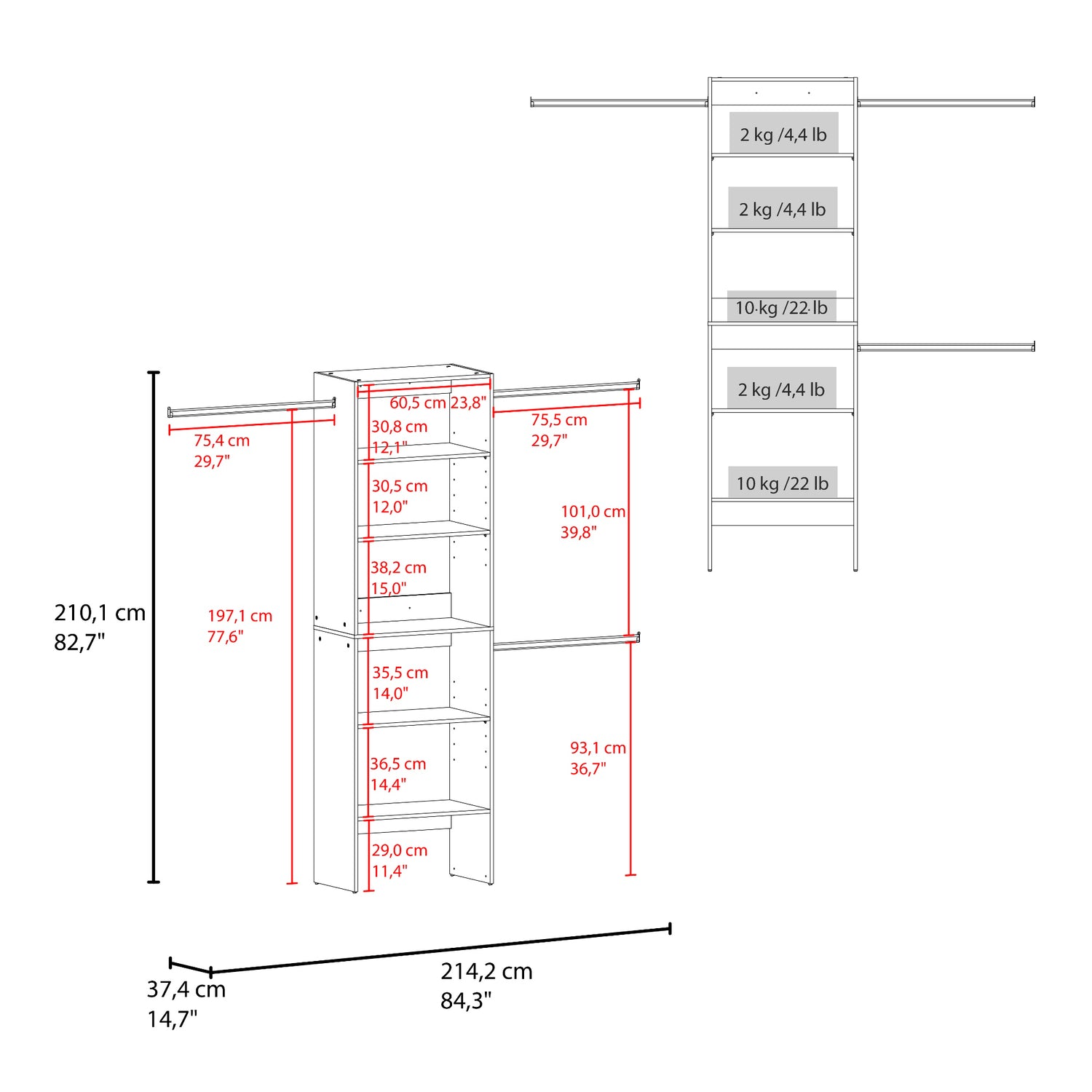 | Capacidad para zapatos | 0 Pares |
