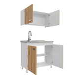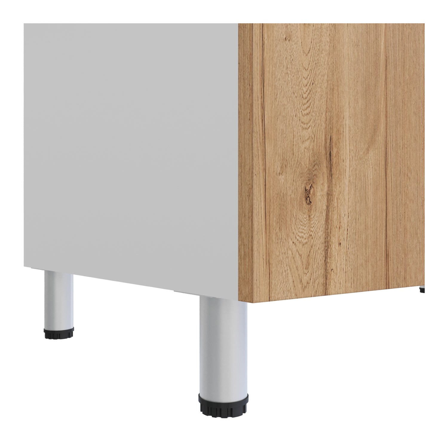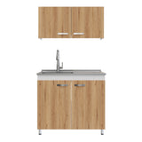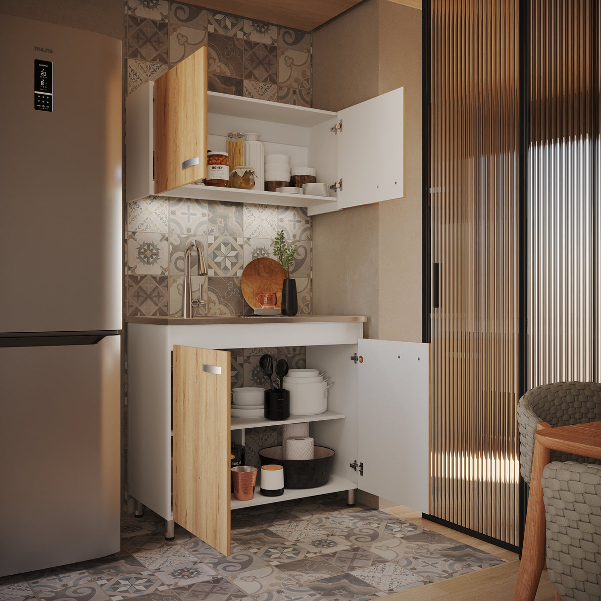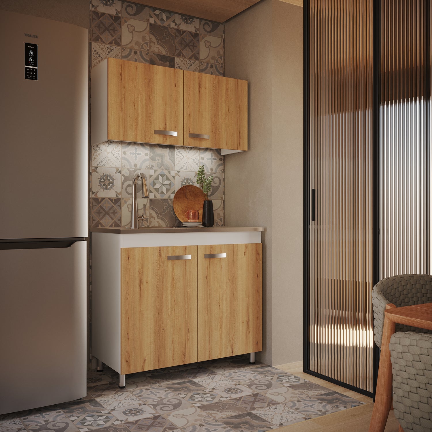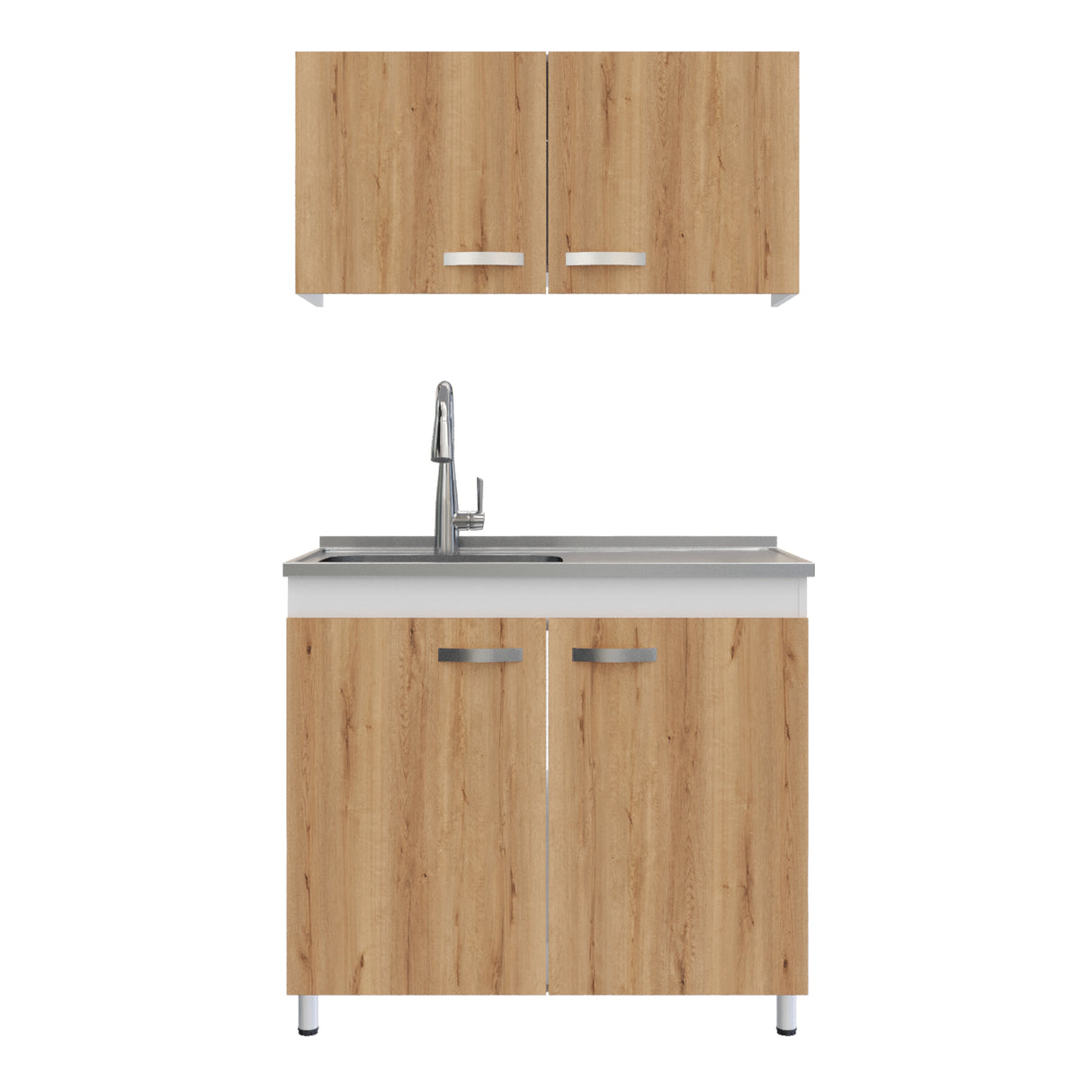 Cocina Integral Freya Blanco y Duna 100x32cm con Mesón de Acero Inoxidable para Lado Izquierdo y sin Estufa