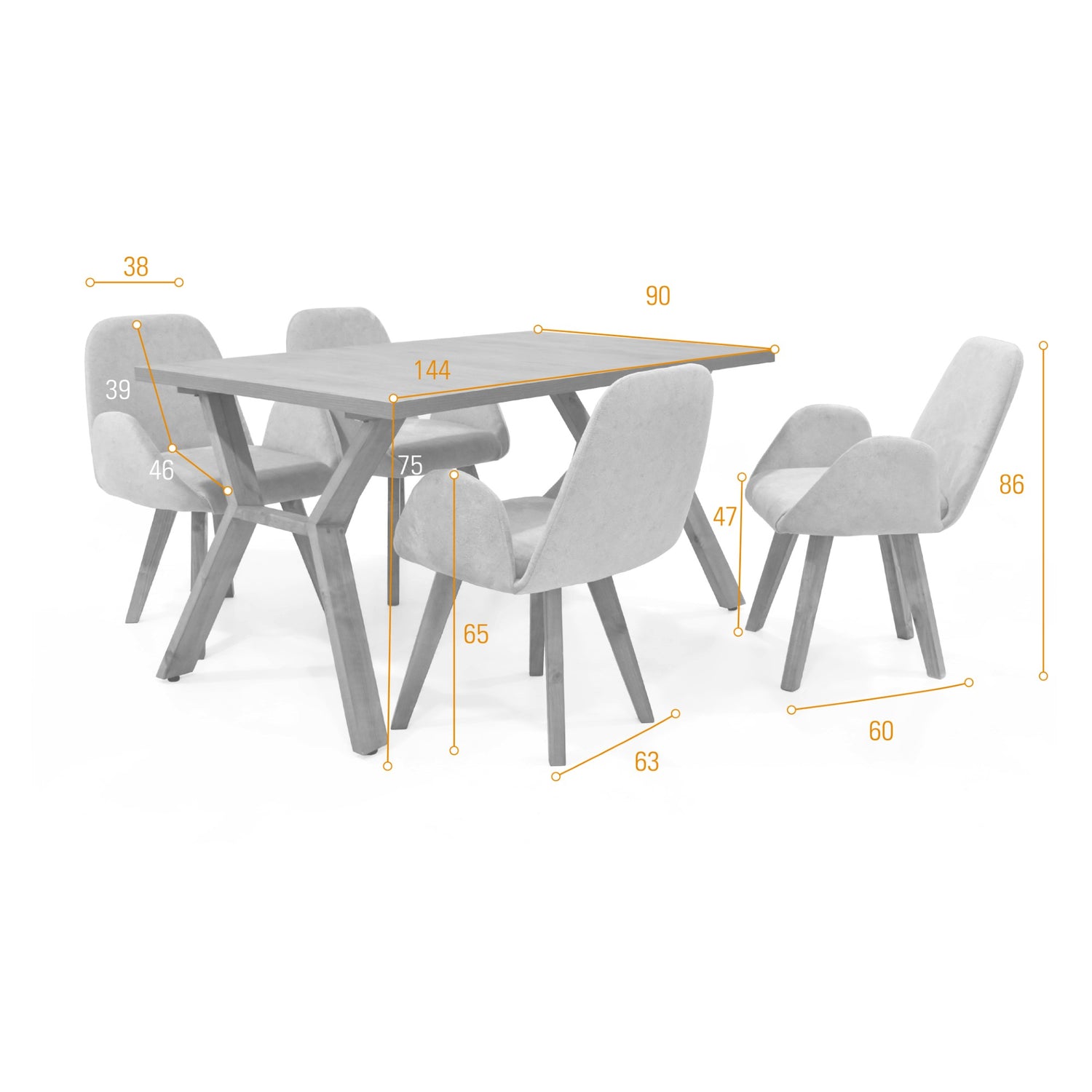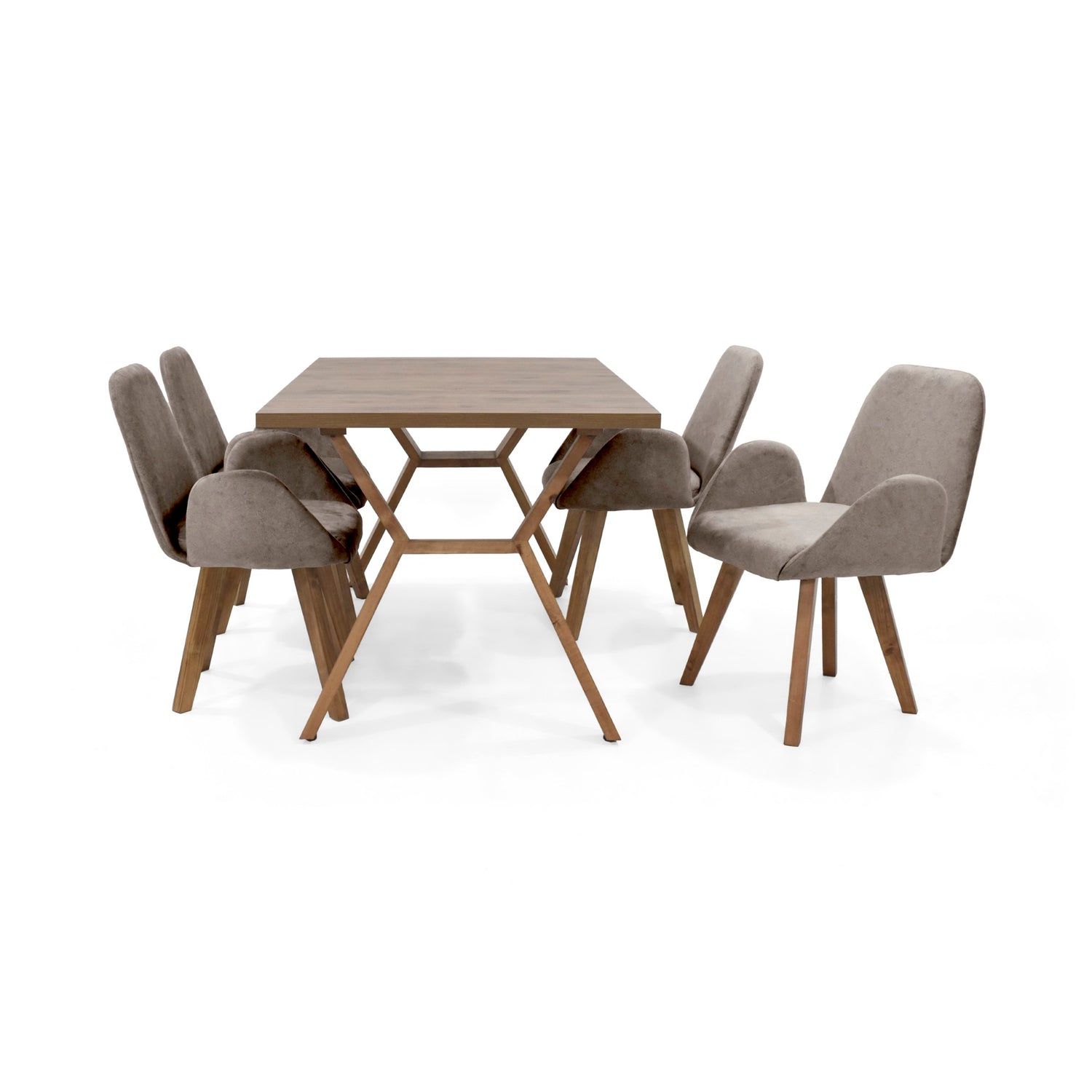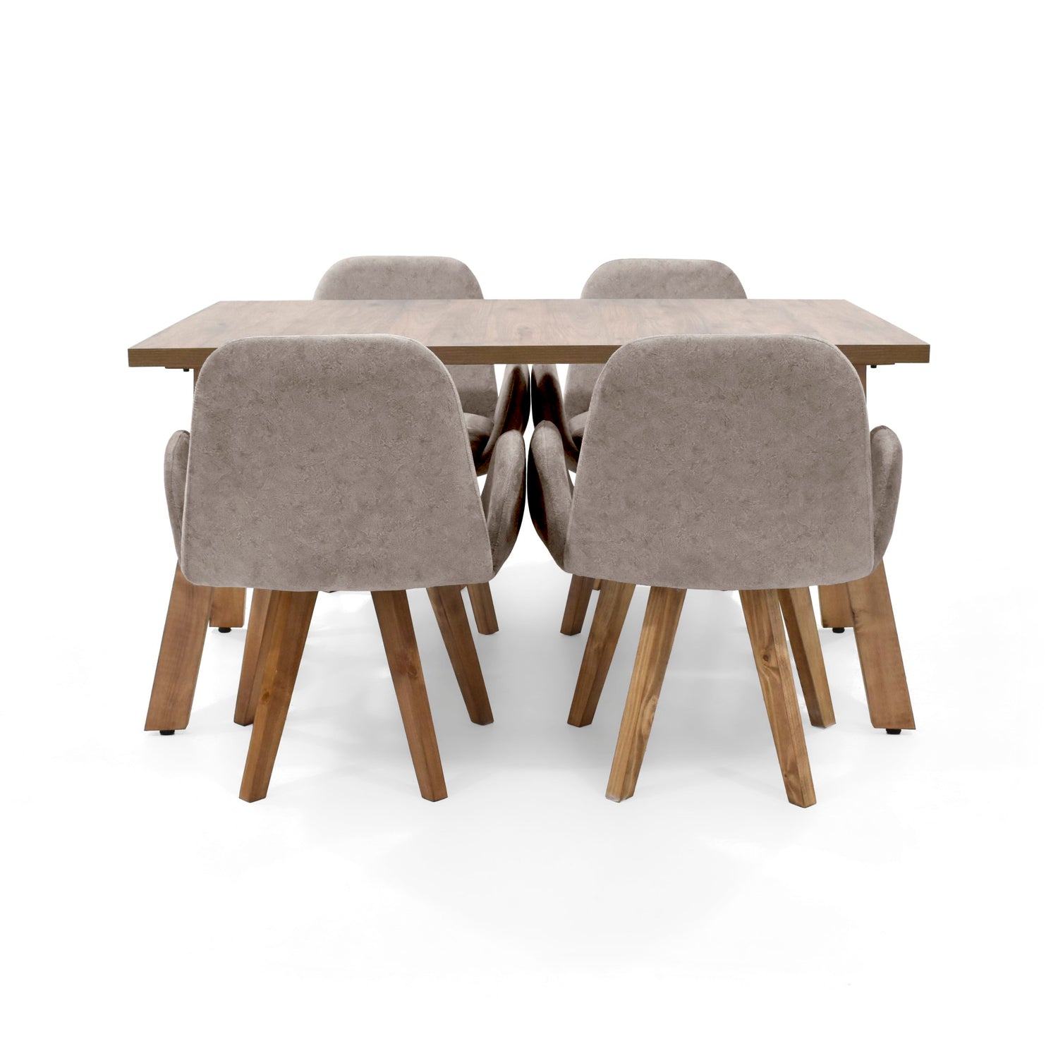 Comedor Nara Taupe y Mácula 144x75cm Rectangular de Cuatro Puestos con Cuatro Sillas Mao