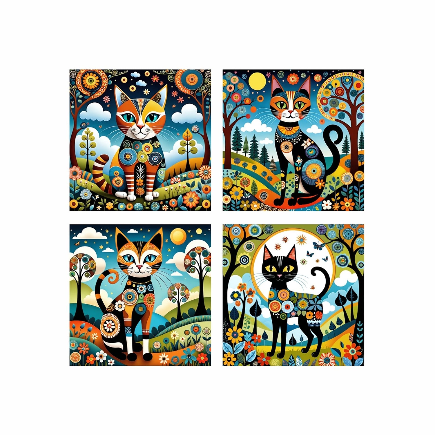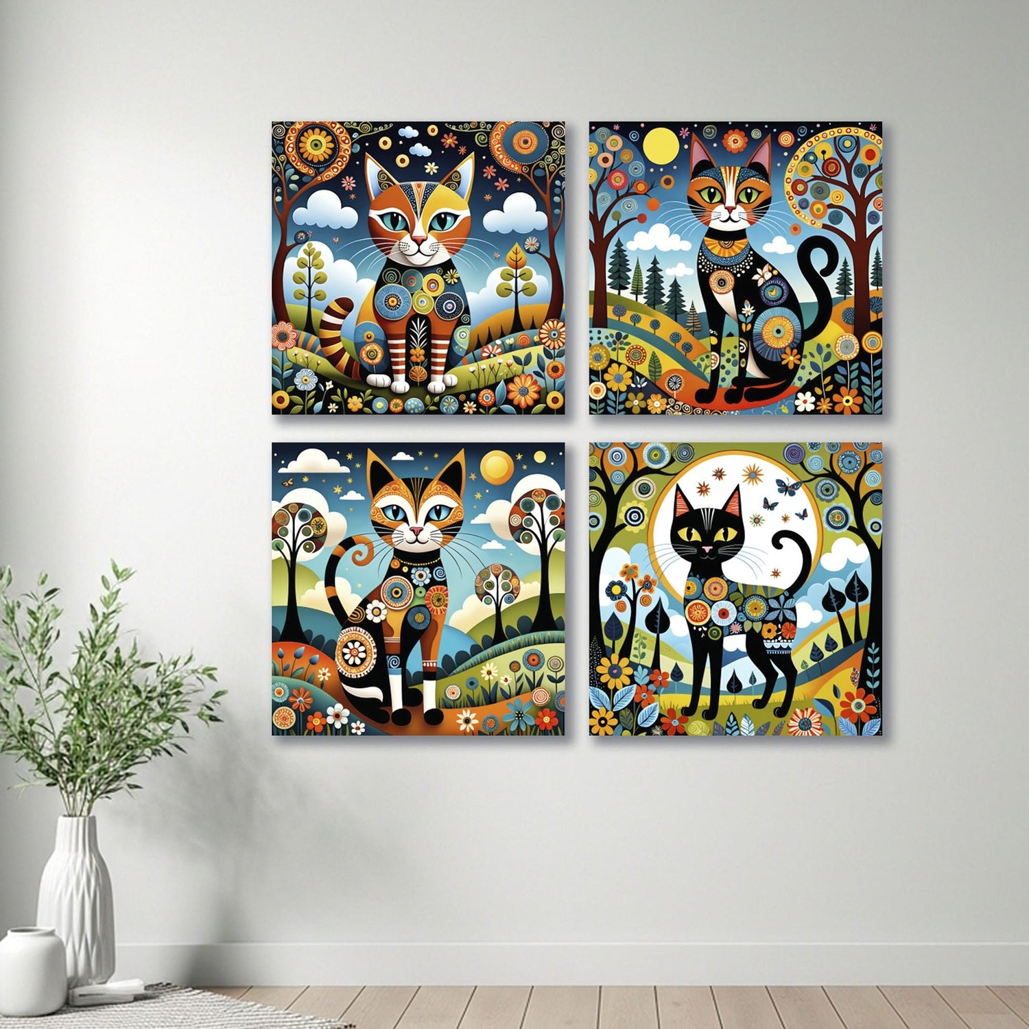 Cuadro decorativo en 4 Piezas Lienzo Jardin del Gato 34x34cm