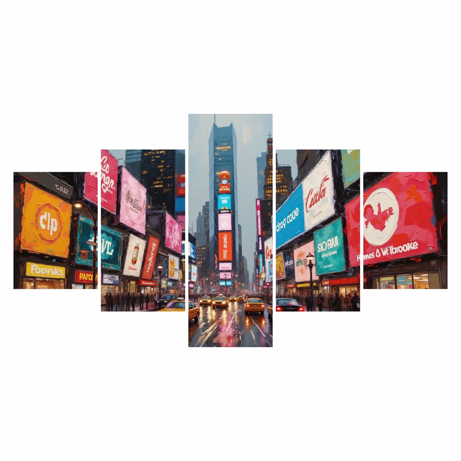 Cuadro decorativo en 5 Piezas Lienzo NY Nocturna Moderna 134x72cm