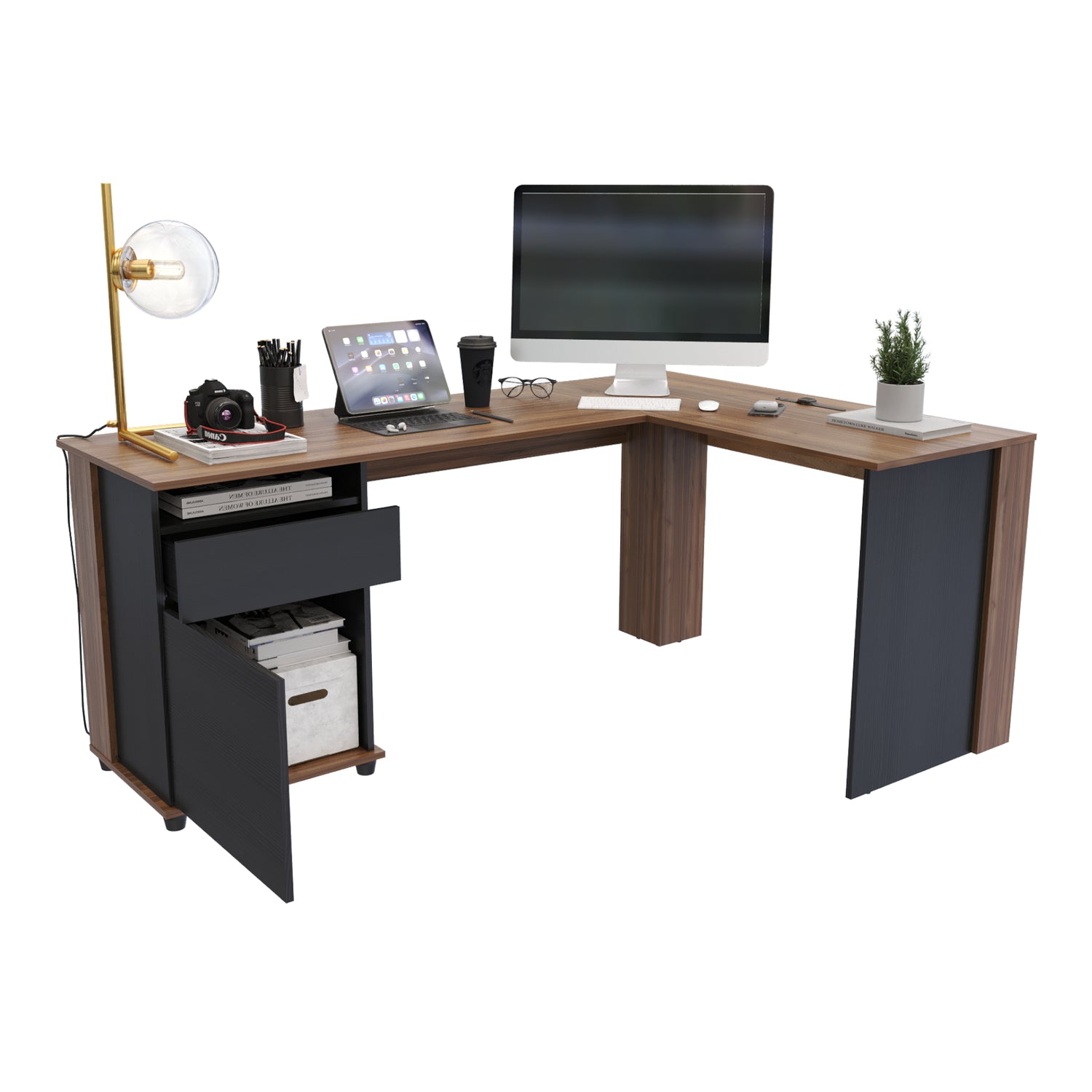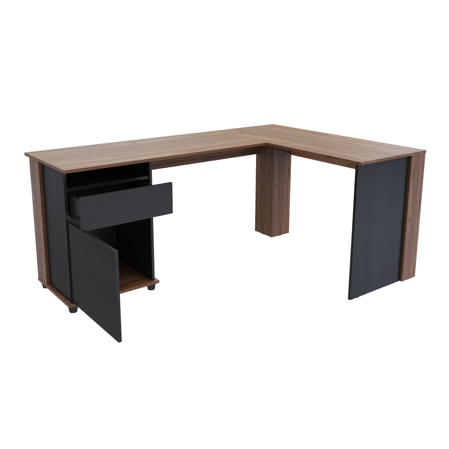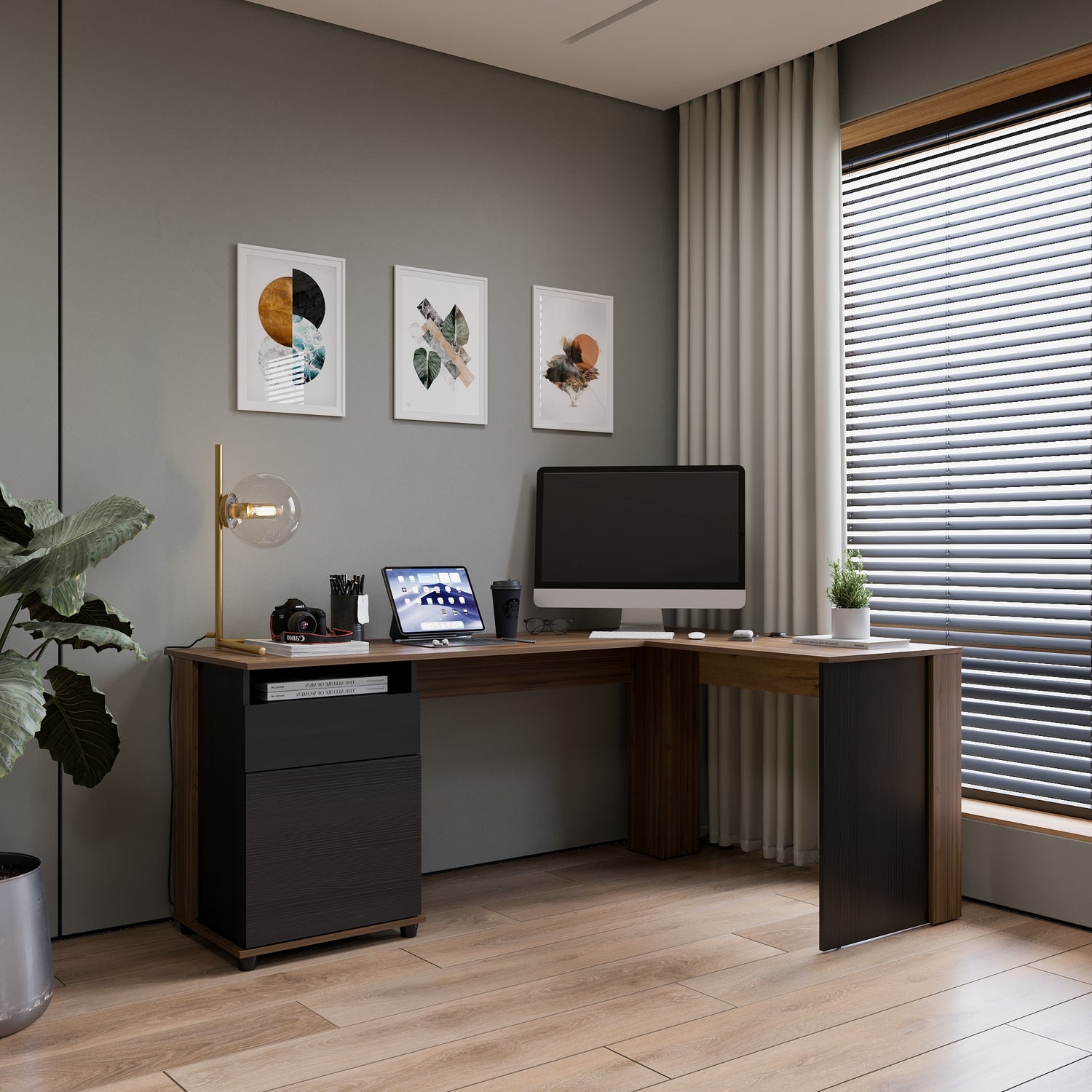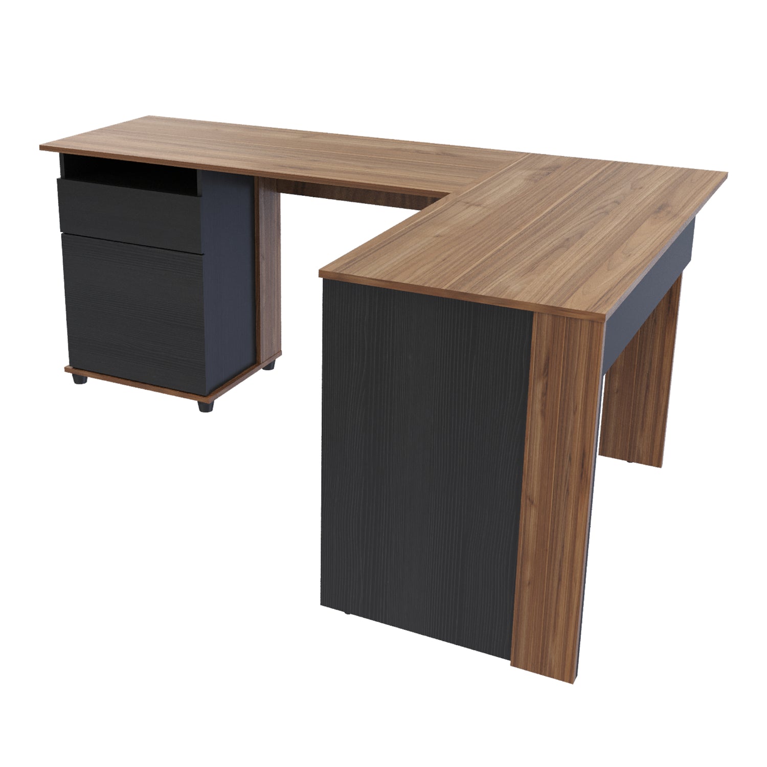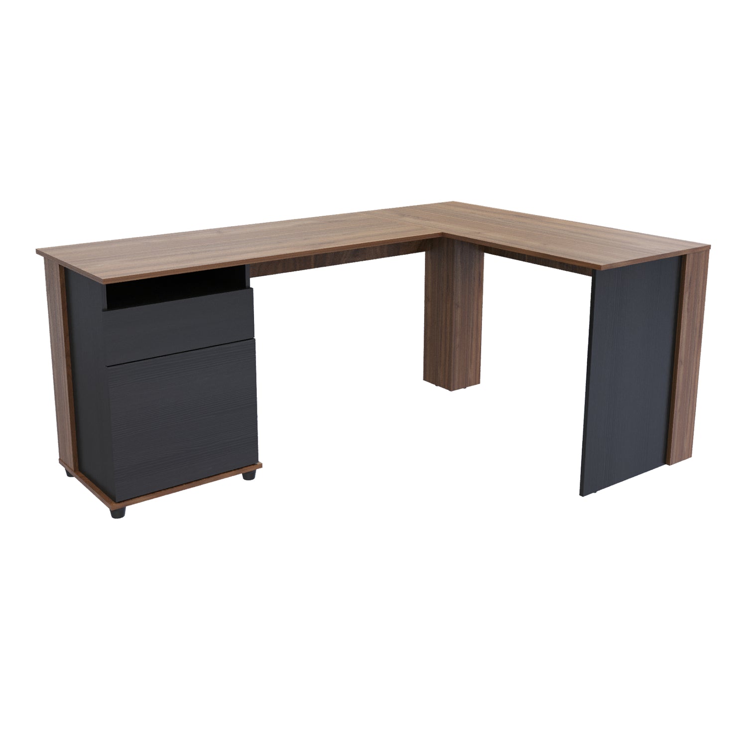 Escritorio en L Sol Gales y Wengue 174x73cm con Dos Cajones