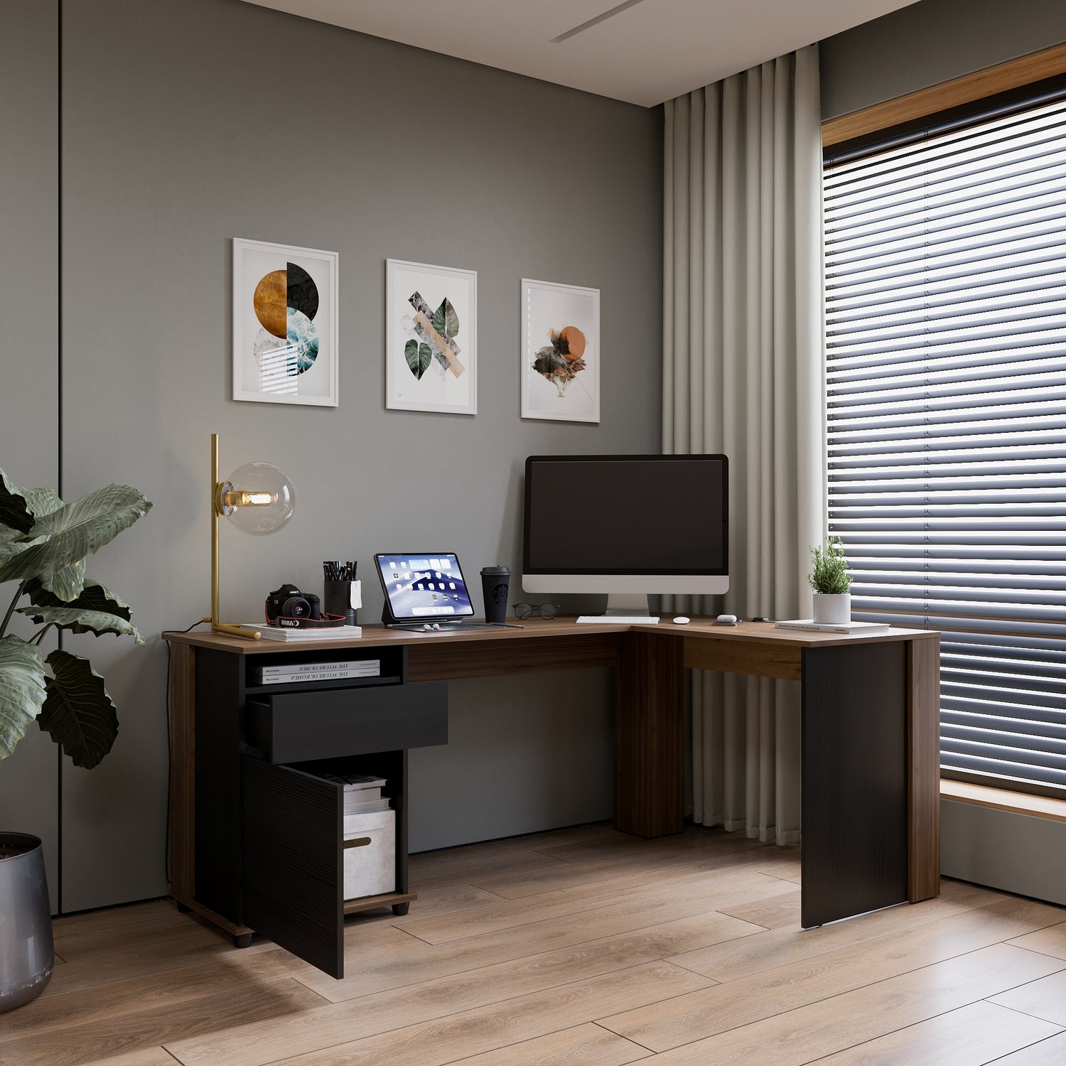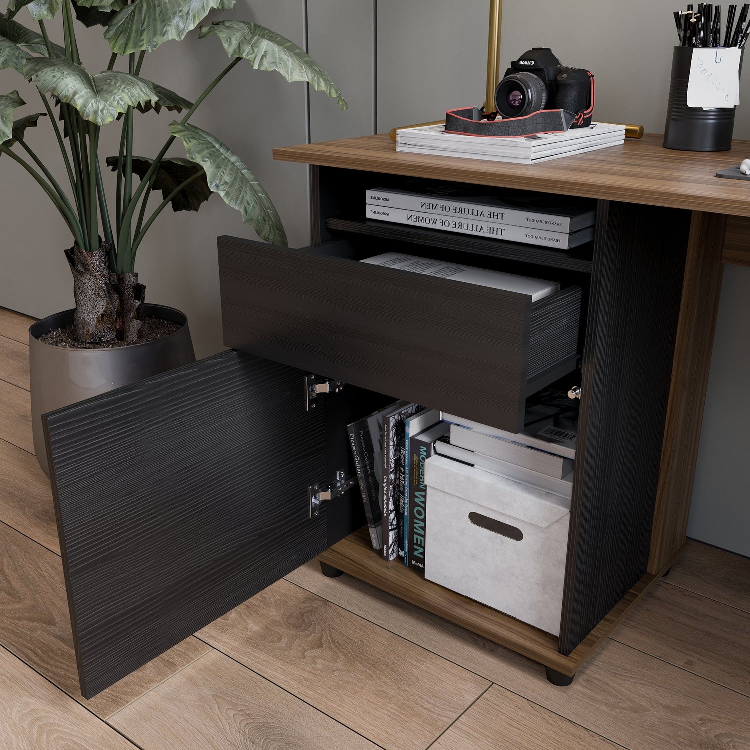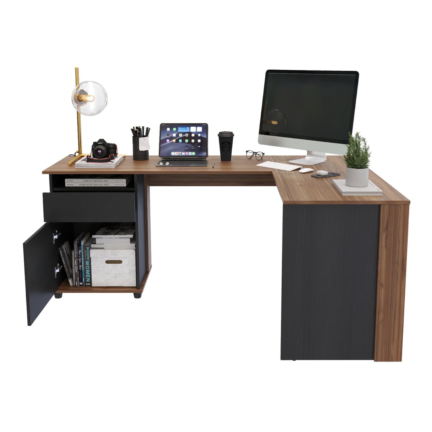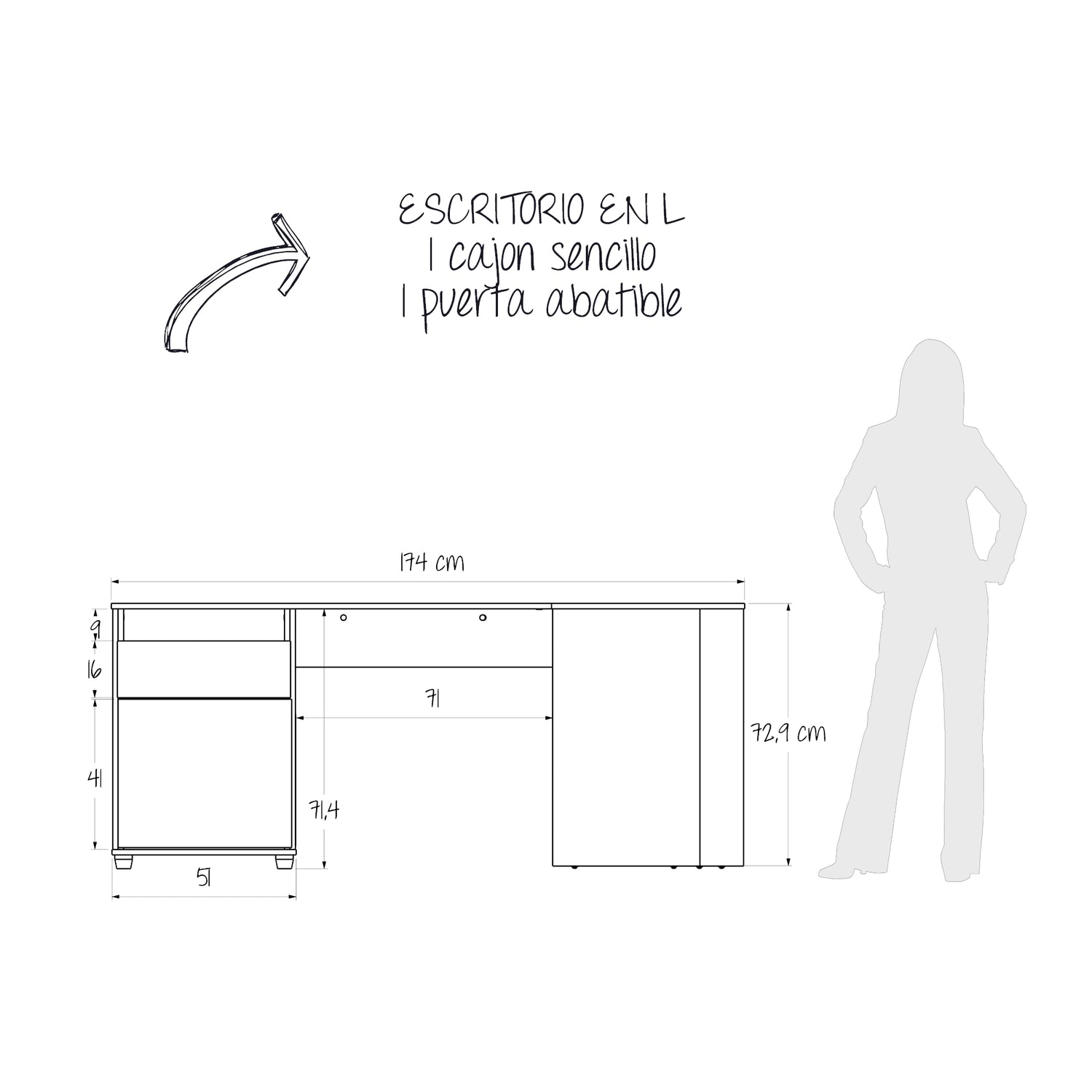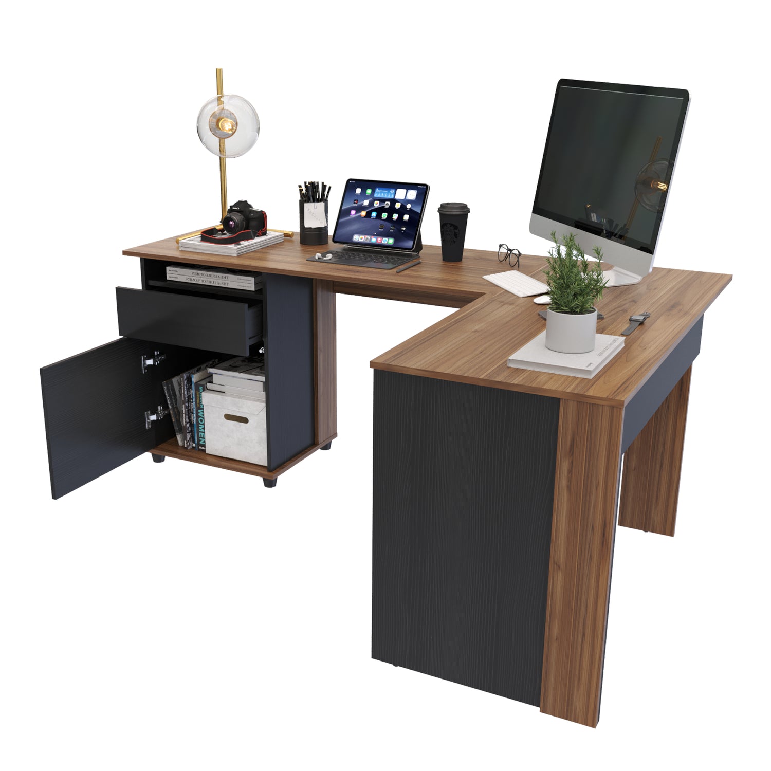 Escritorio en L Sol Gales y Wengue 174x73cm con Dos Cajones