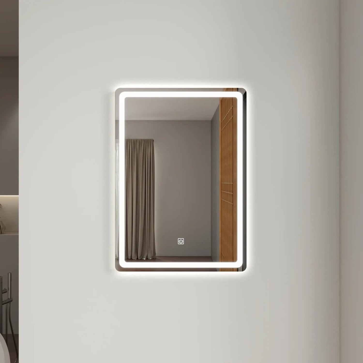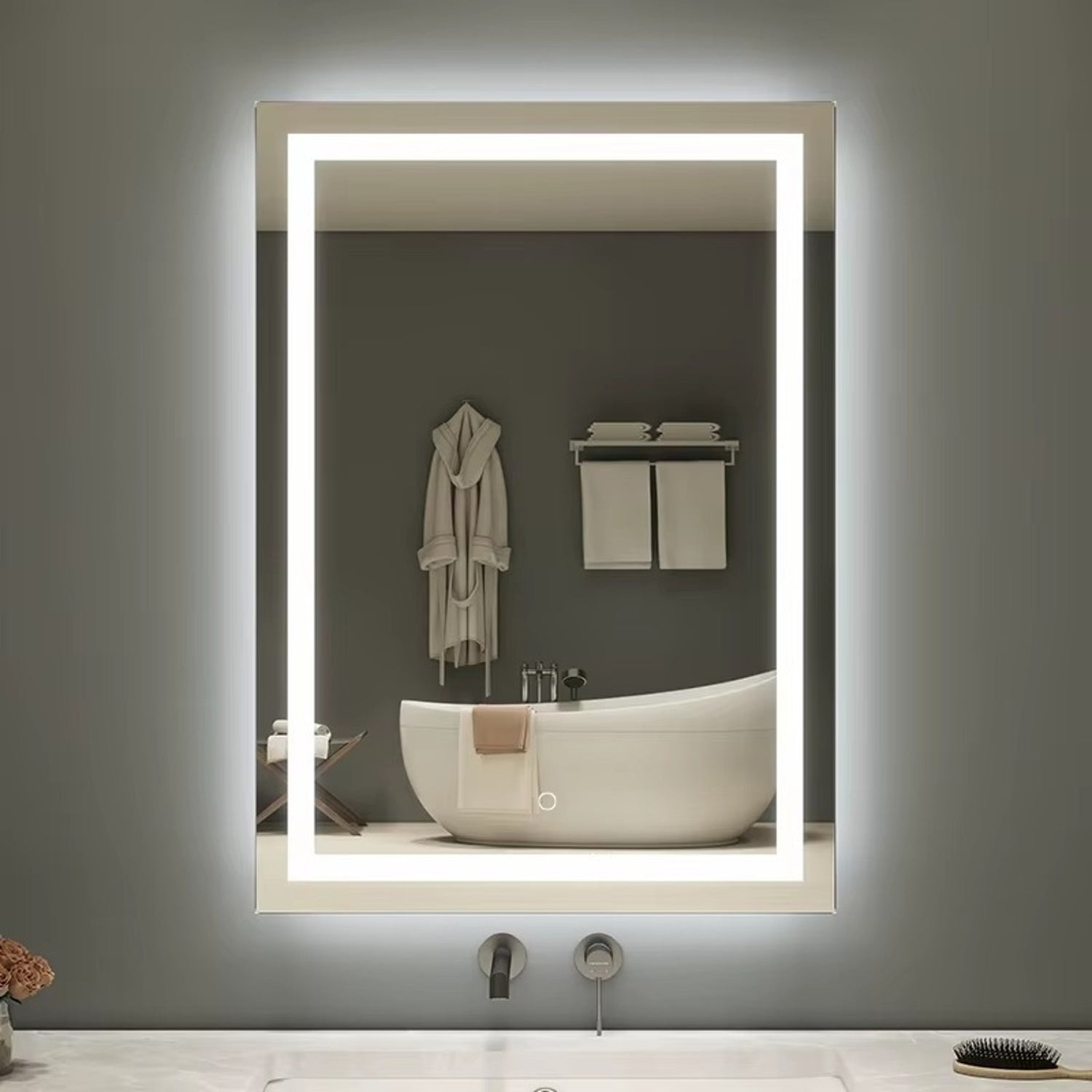 Espejo de Baño Led 50x70cm Luz Neutra Rectangular sin Marco Con Biselado y con SandBlasting