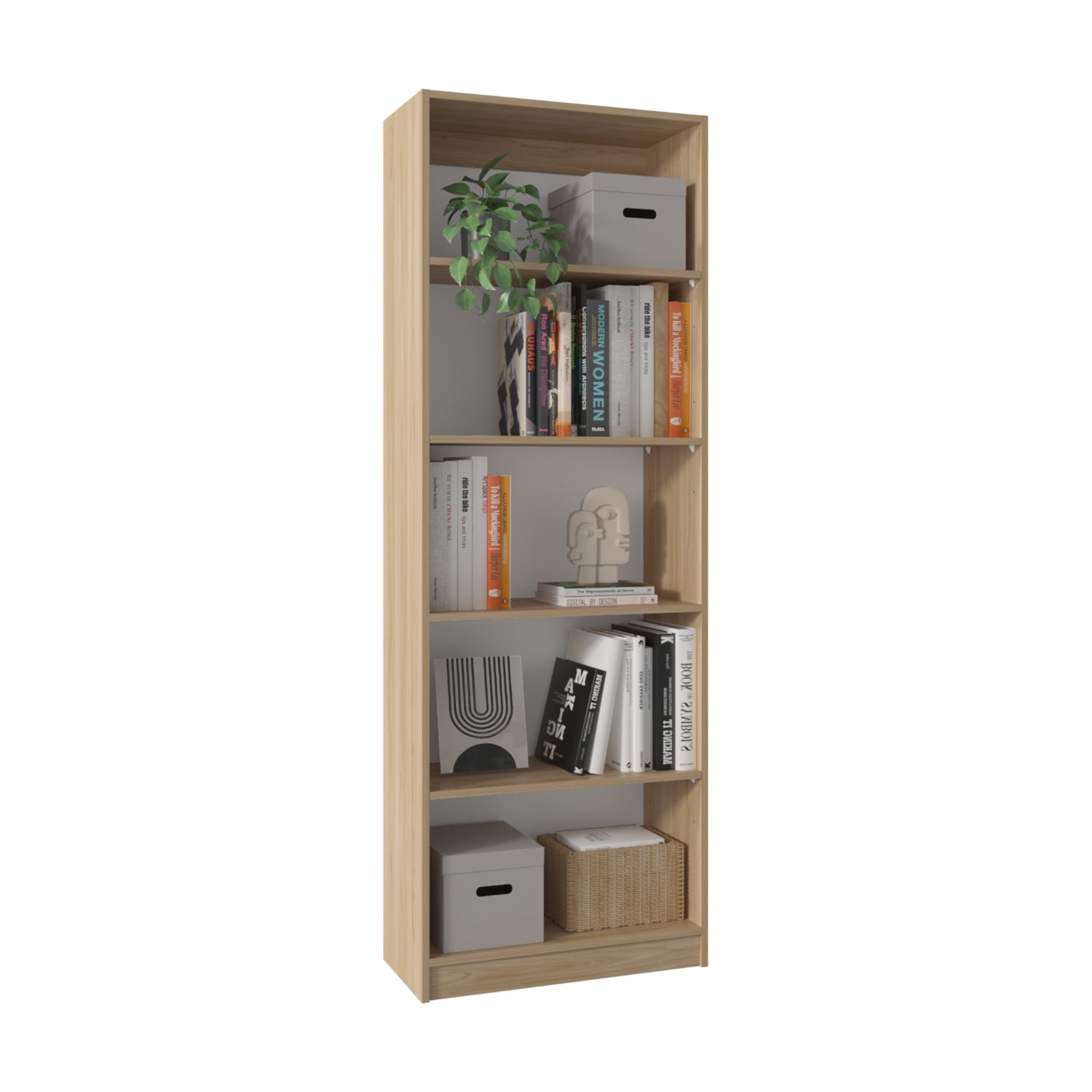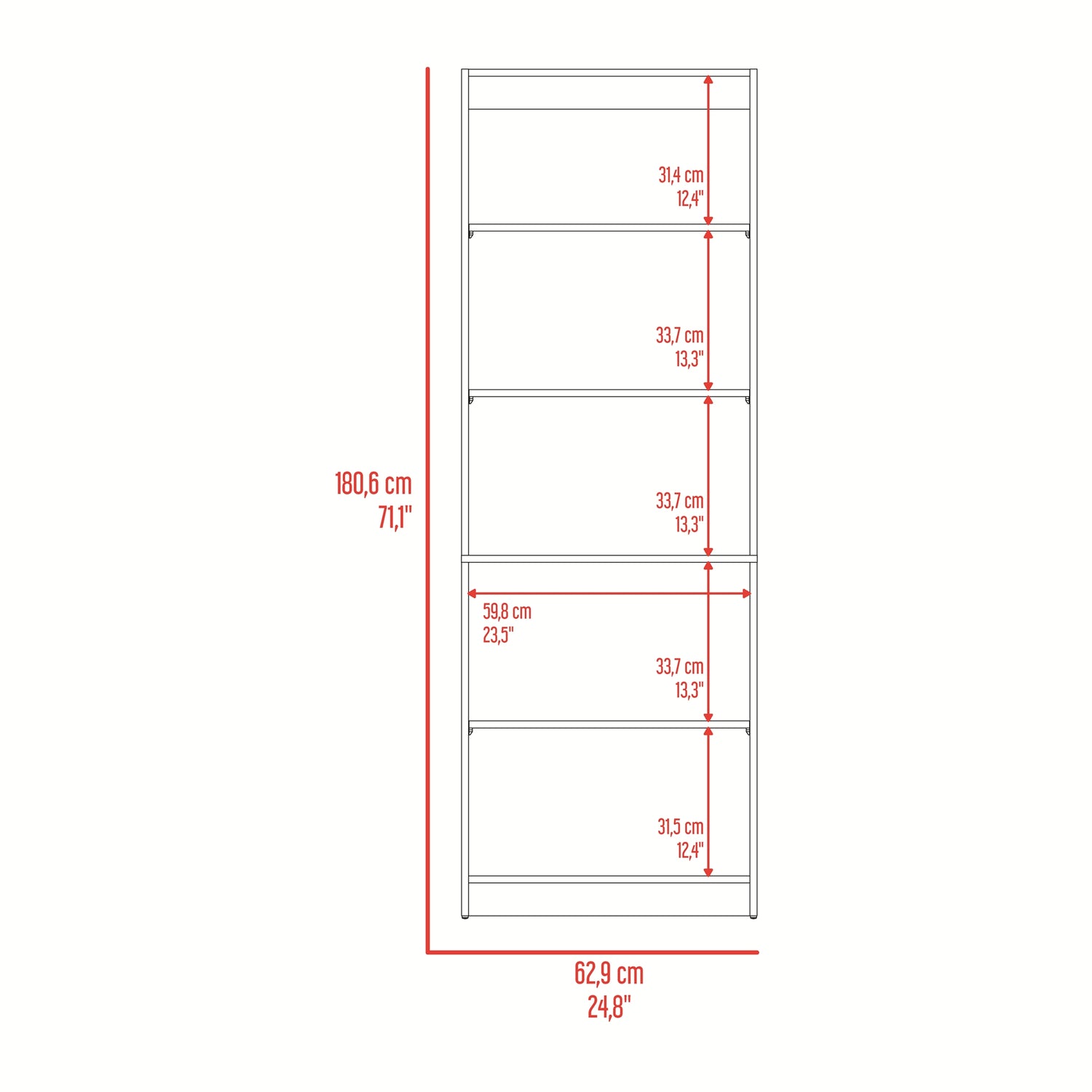 Estantería Rectangular Home Fresno Europeo y Blanco Marquez 62.8x180.6cm con Cuatro Compartimientos y con Tres Entrepaños