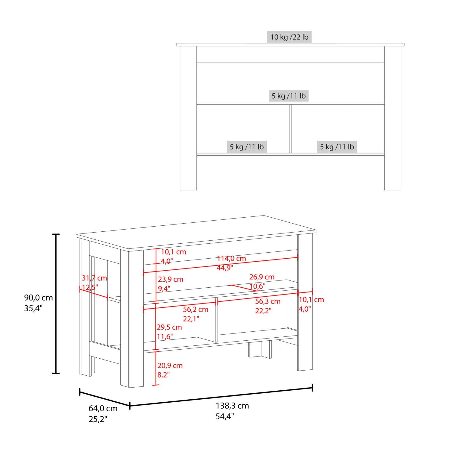 Isla de Cocina Cala Blanco y Fresno 138.3x90cm Con Tres Compartimientos y Un Entrepaño