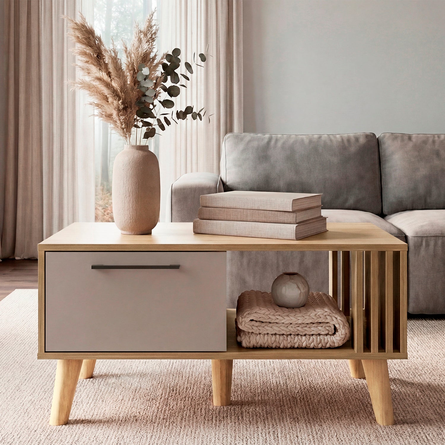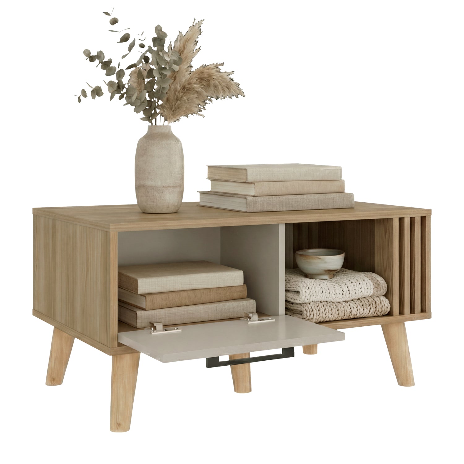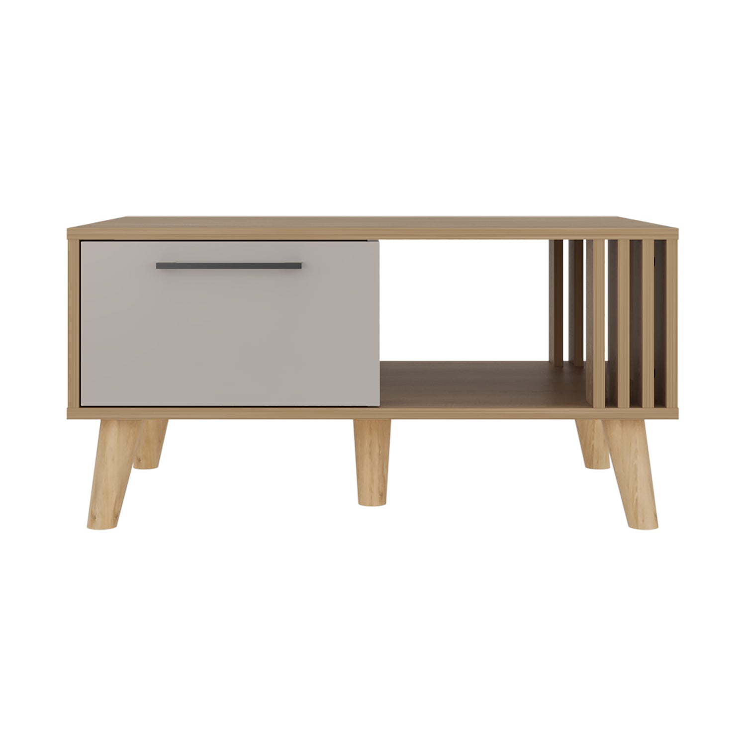 Mesa de Centro Vance Capri y Fresno Europeo 80x40cm Rectangular con Patas y Compartimiento