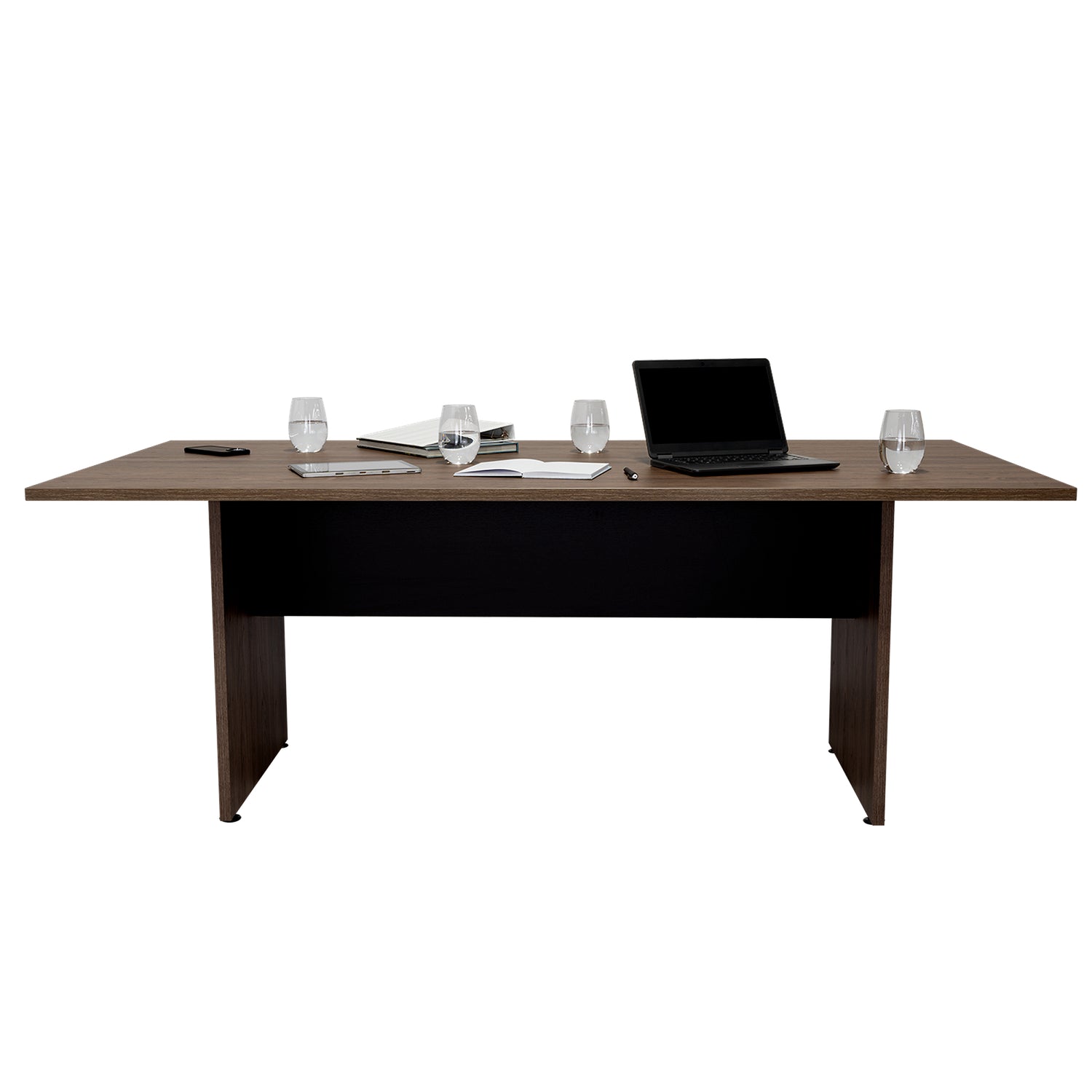 Mesa de Reunión Home Office Wengue y Coñac 200x75cm sin Cajones