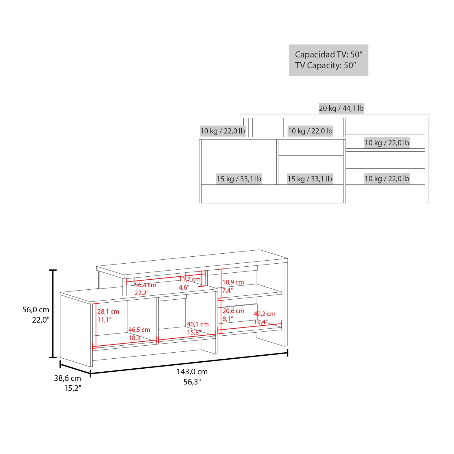 Mesa para TV Bengala Wengue 143x56cm para TV Hasta 50" Pulgadas con Cuatro Compartimientos
