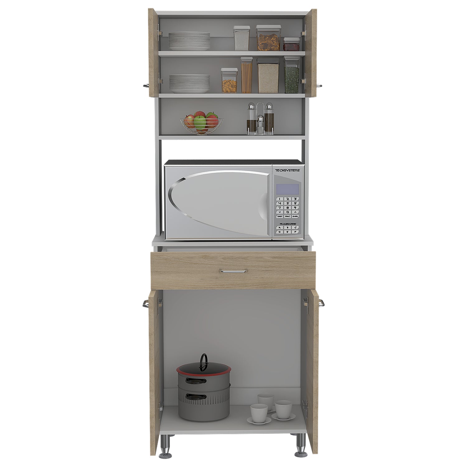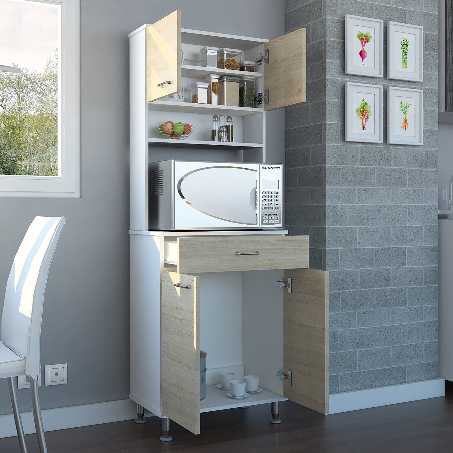 Módulo Microondas Kitchen 60 Blanco y Rovere 60x169cm con Un Cajón y con Cuatro Puertas