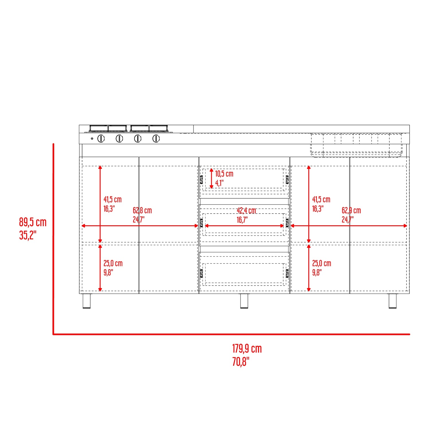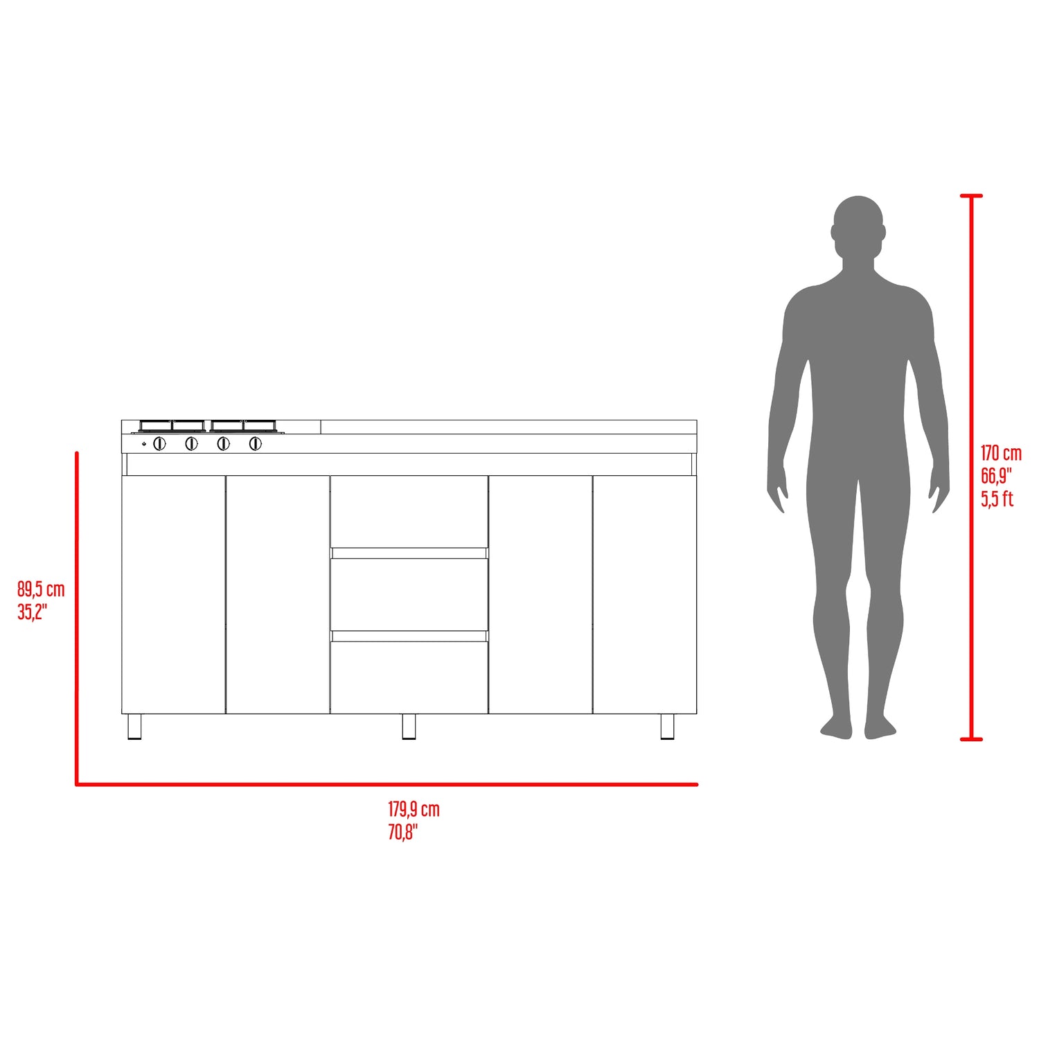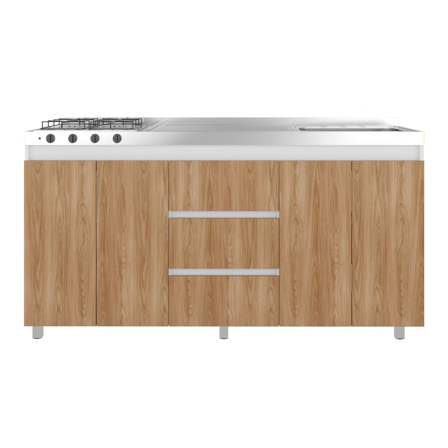 Mueble Inferior de Cocina Boreal Blanco Fresno 179.9x89.5cm con Meson de Acero Inoxidable Lado Derecho y con Estufa