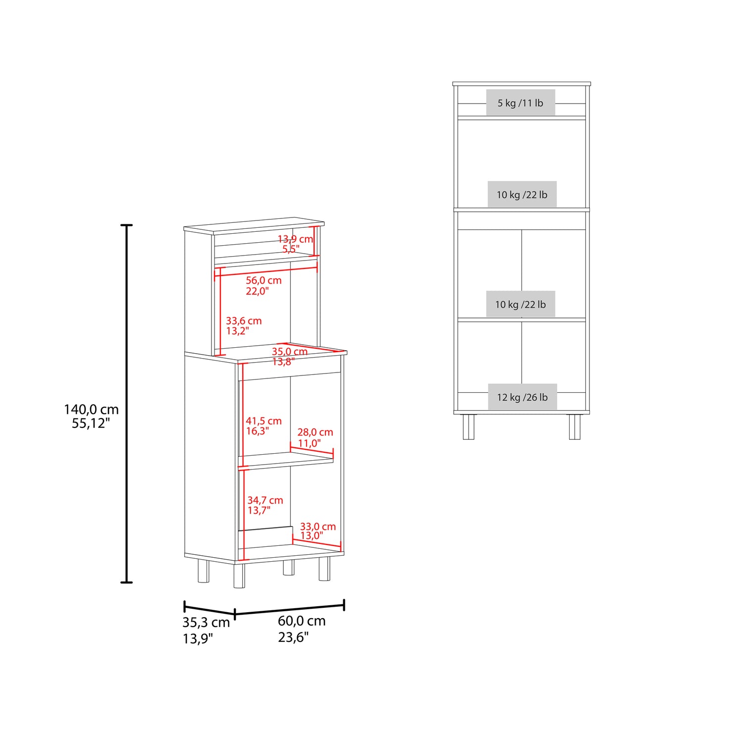 Mueble Microondas Alani Blanco 60x140cm con Dos Puertas y con Patas