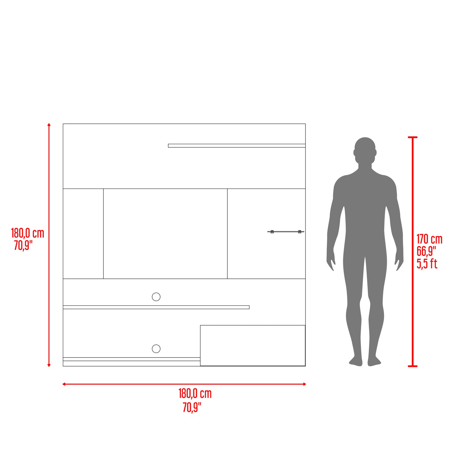 Panel de TV Henry Blanco Marquez y Avellana 180x180cm para TV Hasta 65" Pulgadas con Ranura para Cables