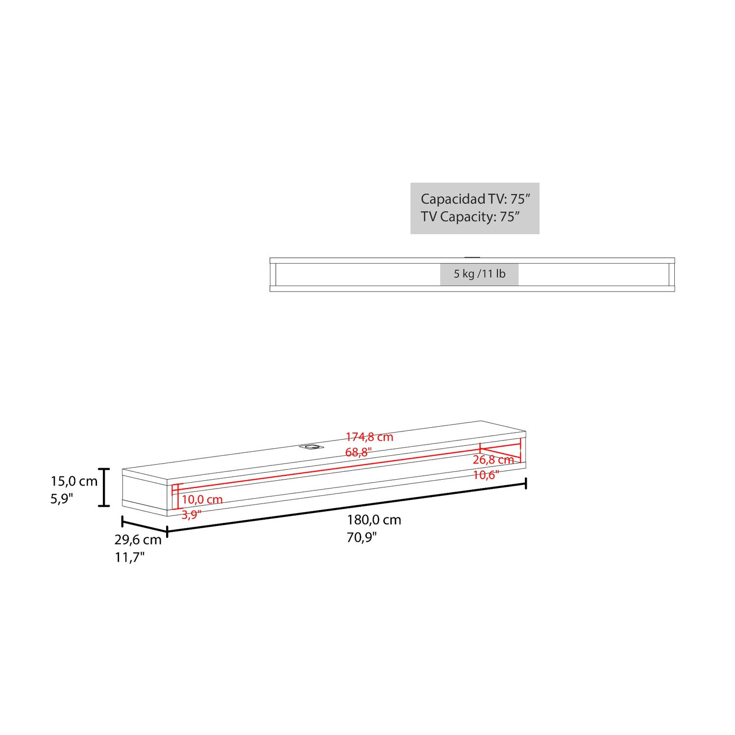 Rack de TV Luft Wengue 180x15cm Flotante para TV Hasta 75" Pulgadas con Un Compartimiento