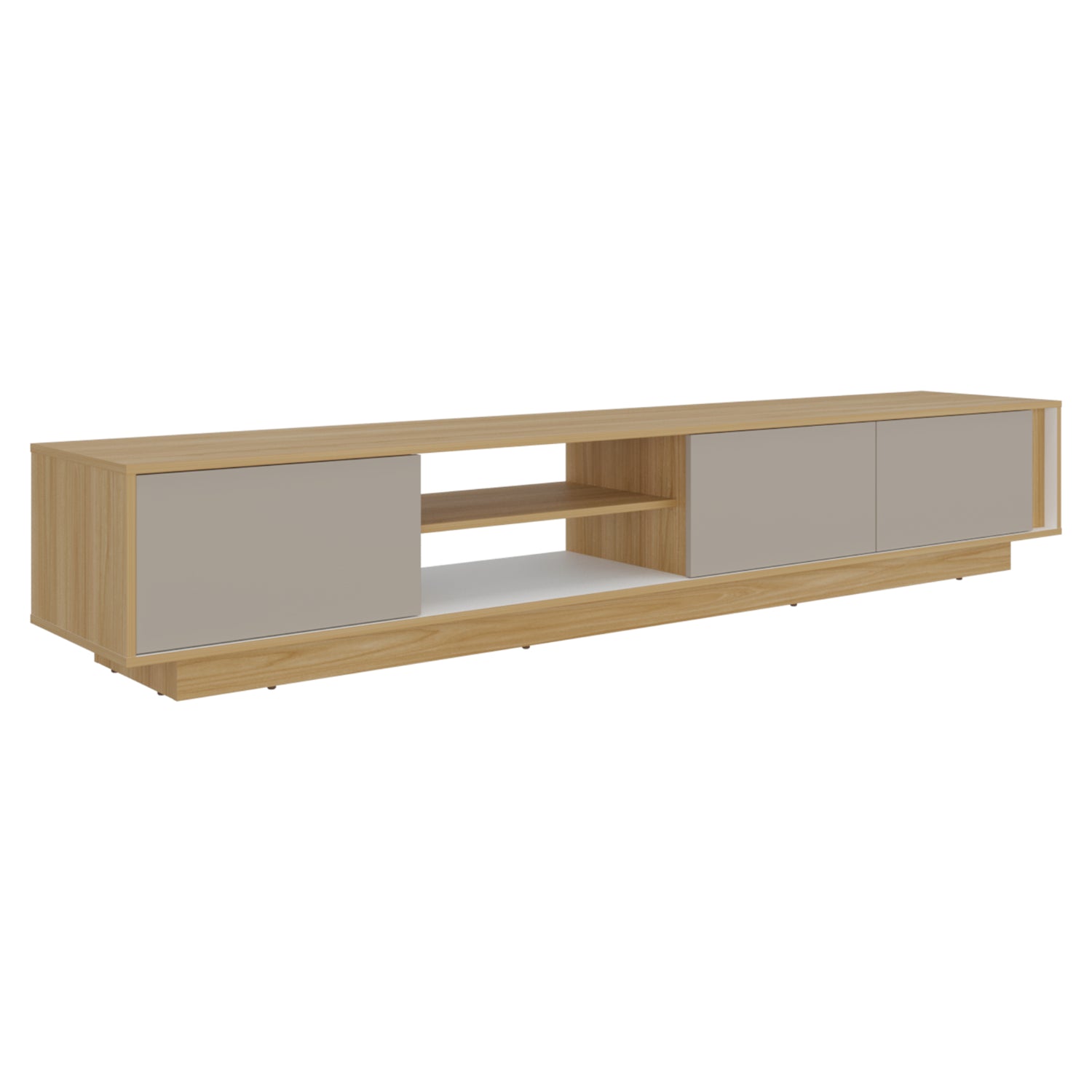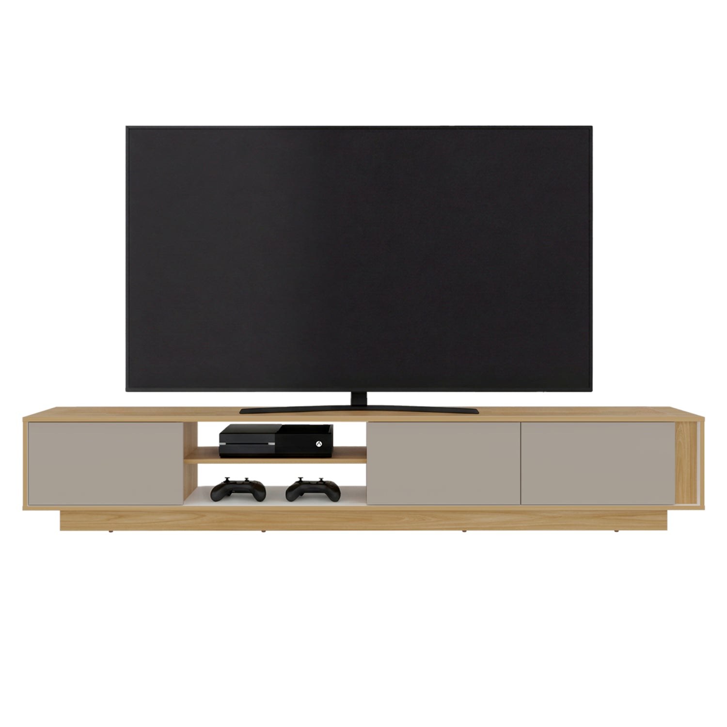 Rack de TV Maldivas Fresno Europeo y Capri 230x40cm para TV Hasta 85" Pulgadas con Dos Compartimientos