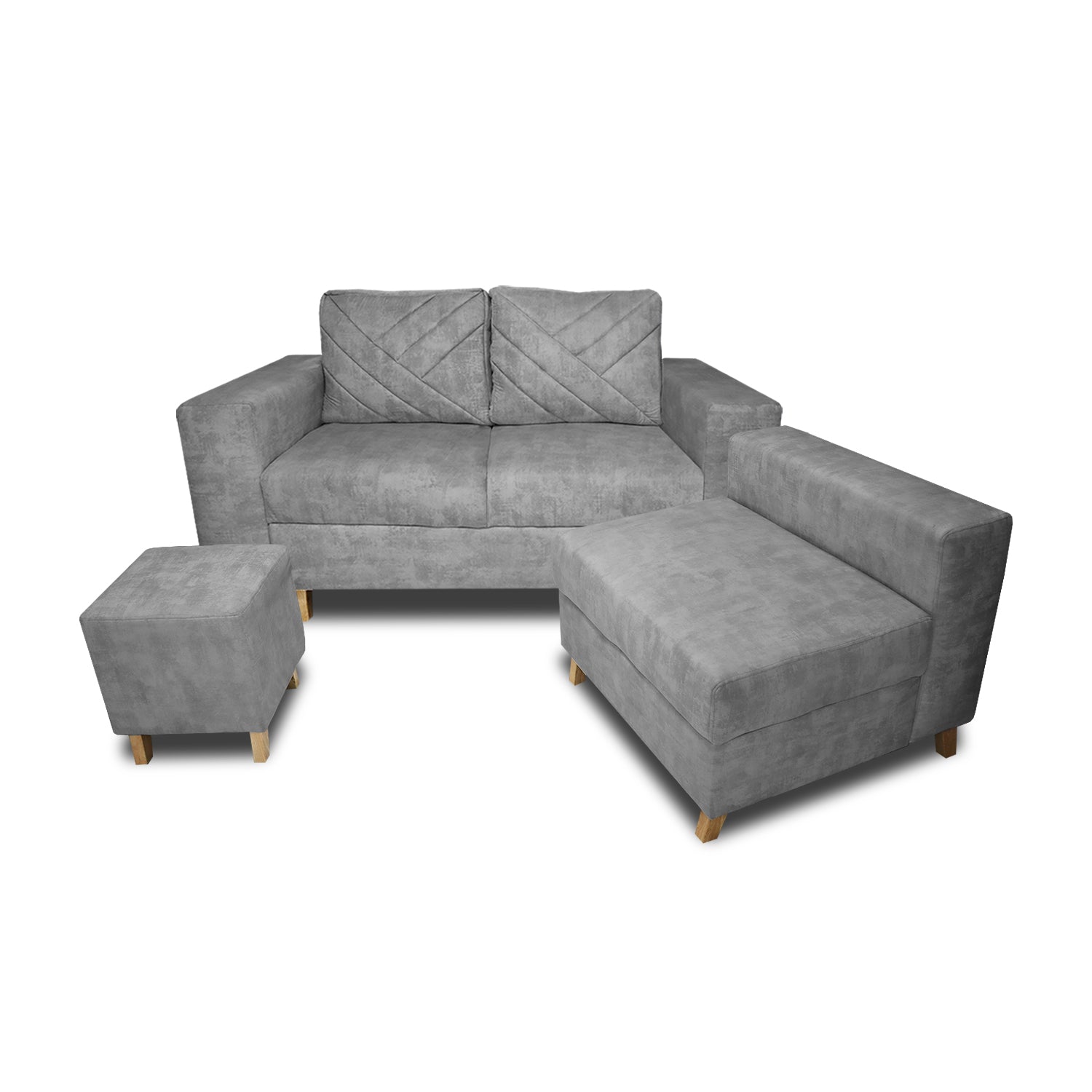 Sala Amsterdam Gris 150x72cm de Tela Amigable con Mascotas + Silla + Puff