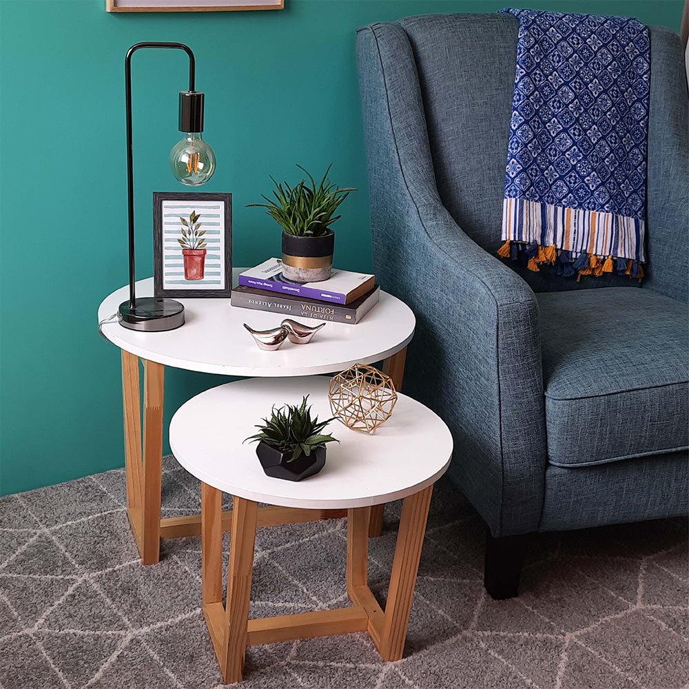 Set X 2 Mesas de Centro Bits Blanco y Pino Natural 60x53cm Circulares