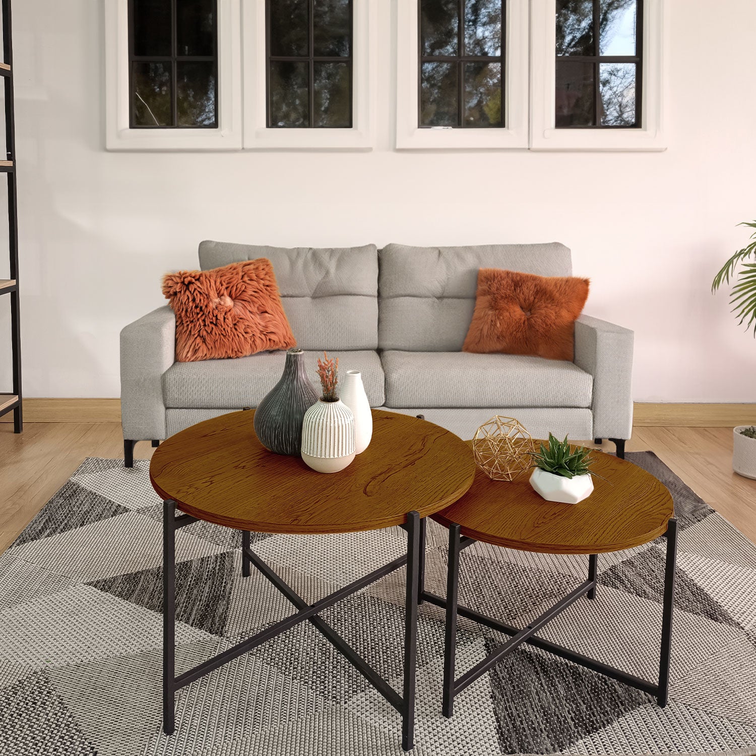 Set X 2 Mesas de Centro Silver Madera Oscura y Negro 58x35.5cm Circulares