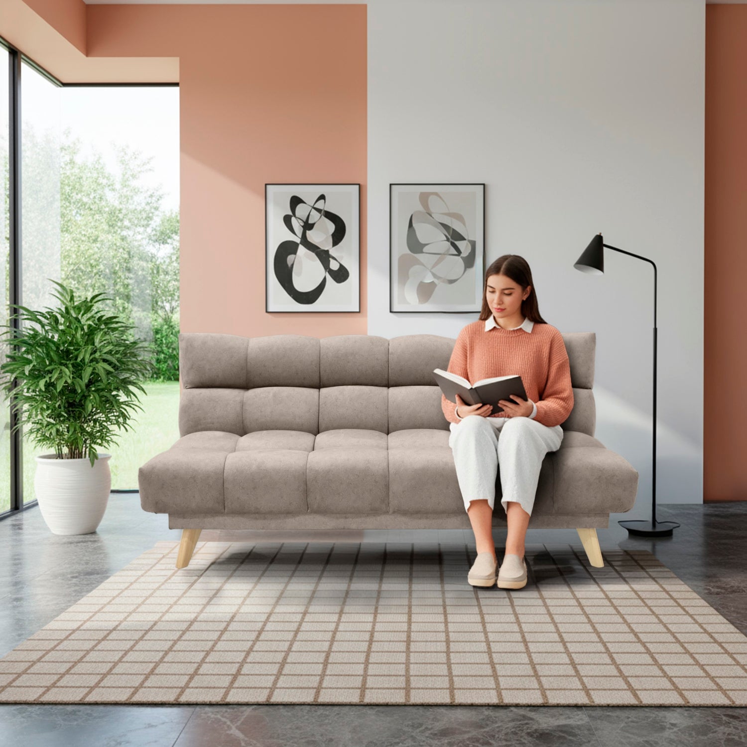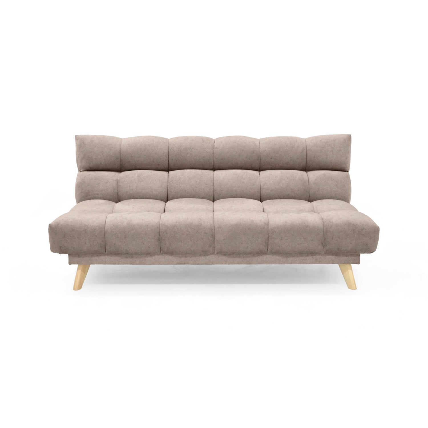 Sofá Cama Nubo Taupe y Matiz Natural 178x82cm De Tres Puestos Reclinable y Tapizado Capitoneado