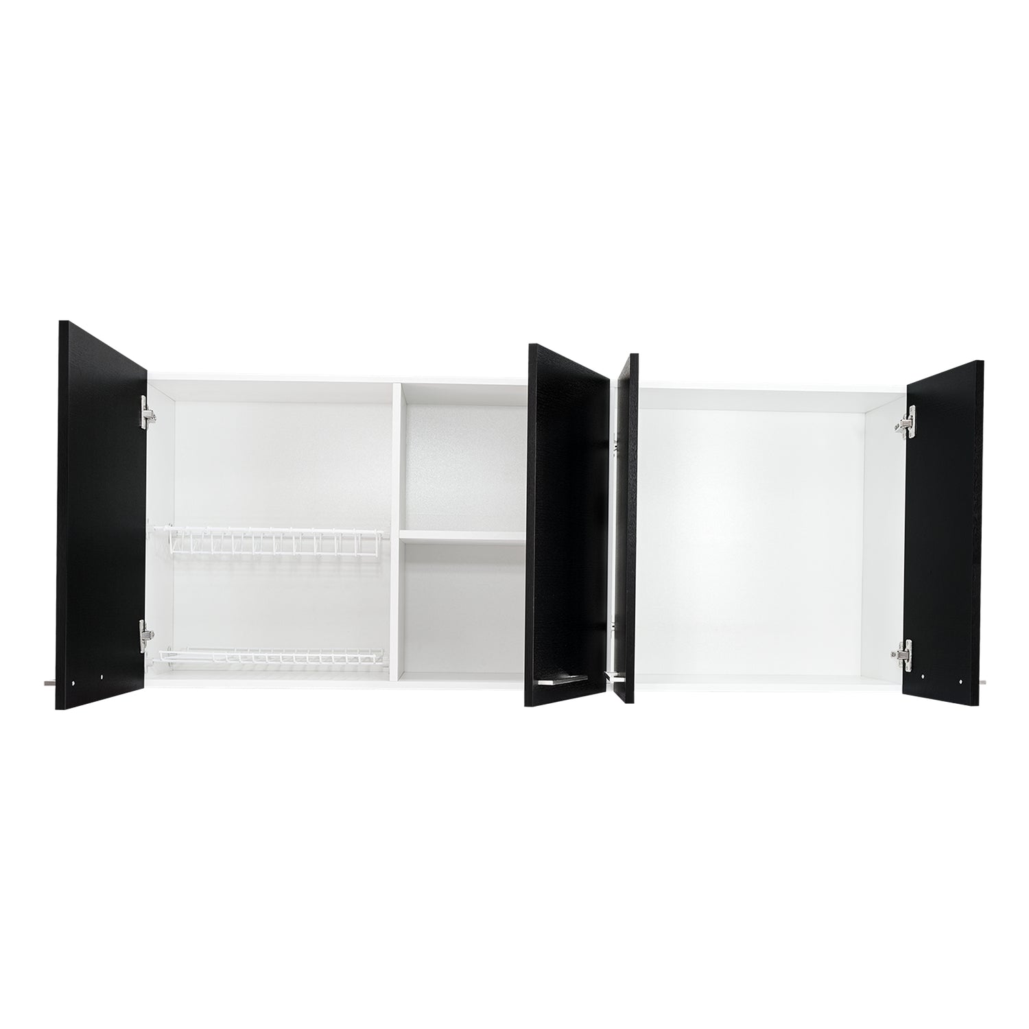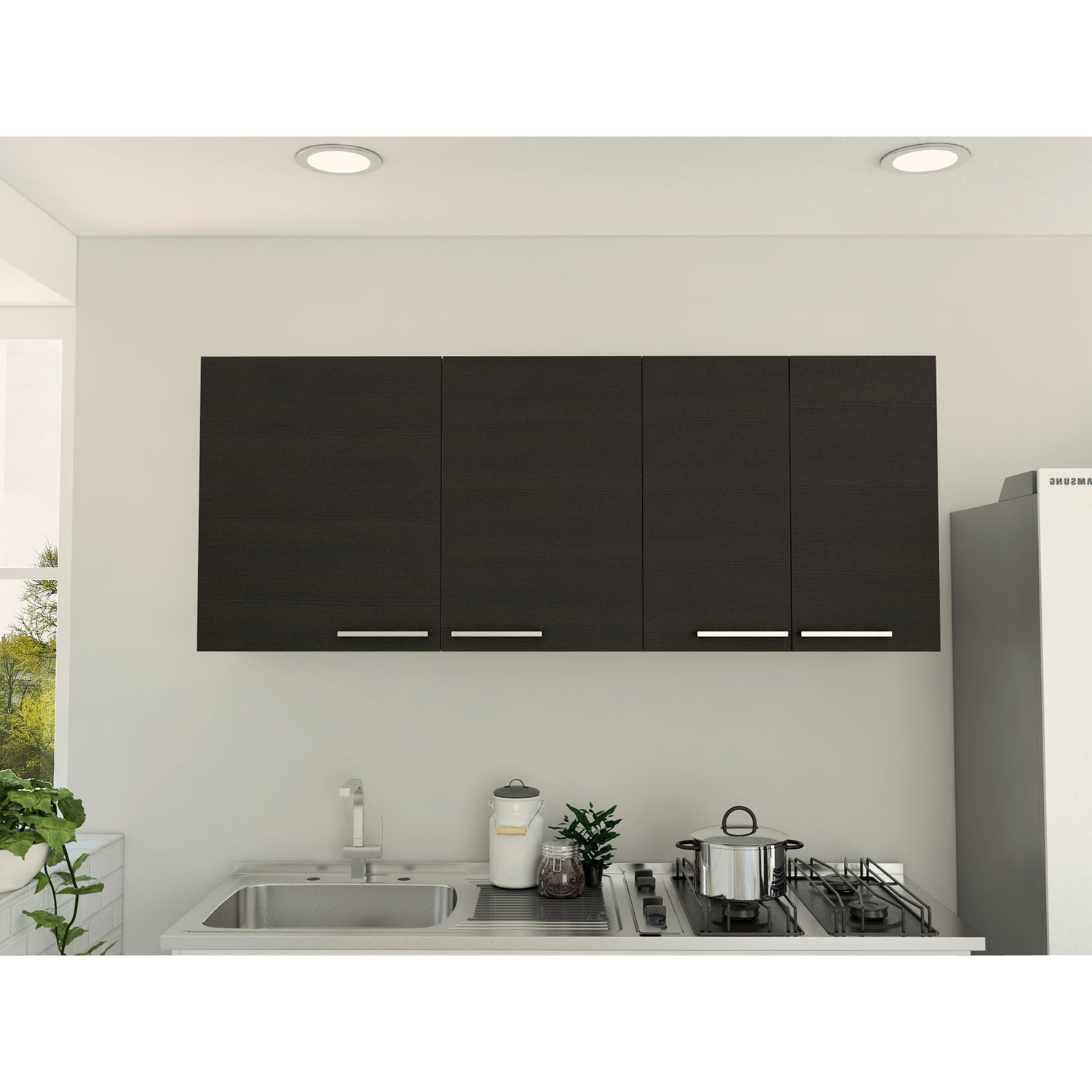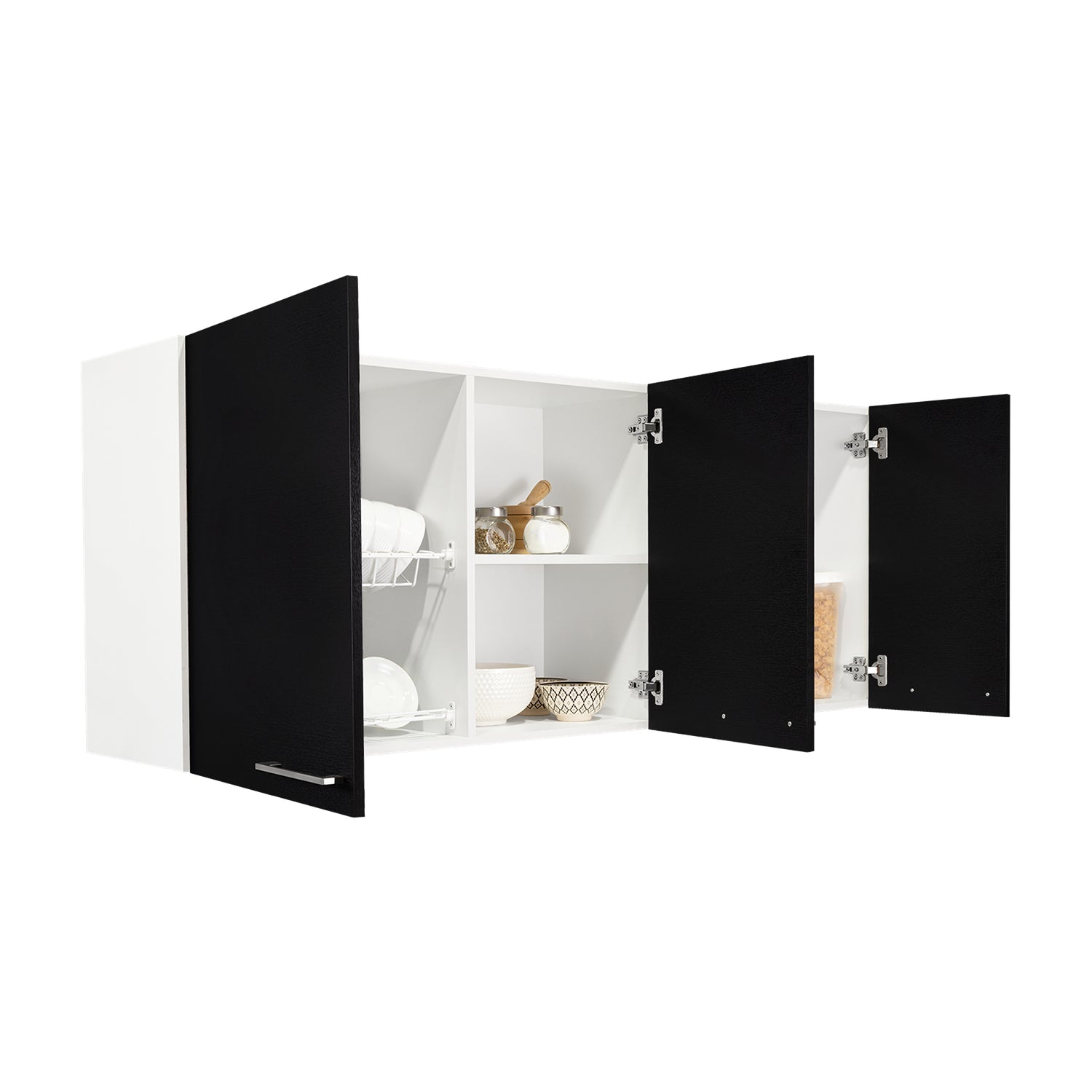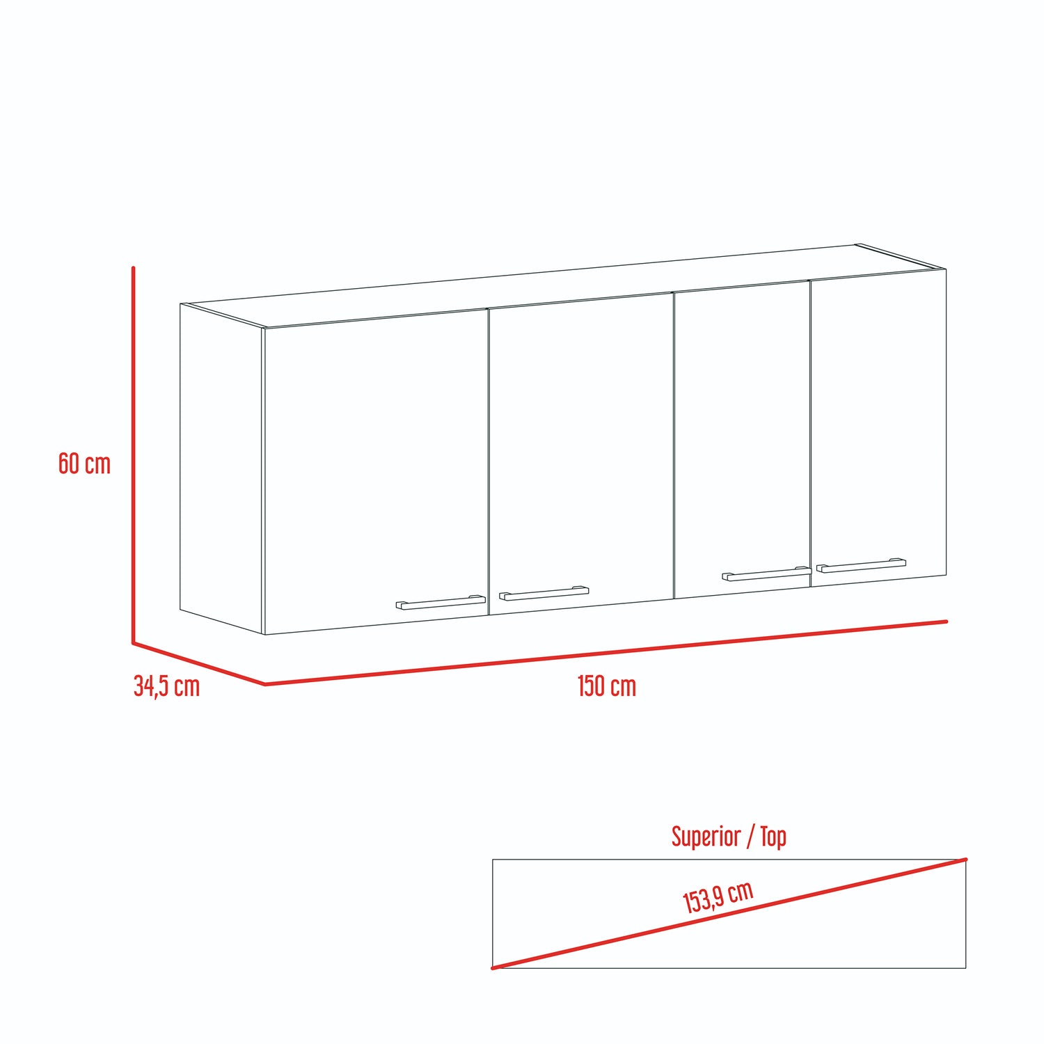 Mueble Superior de Cocina Blanco y Wengue 150x60cm con Un Entrepaño y con Cuatro Puertas