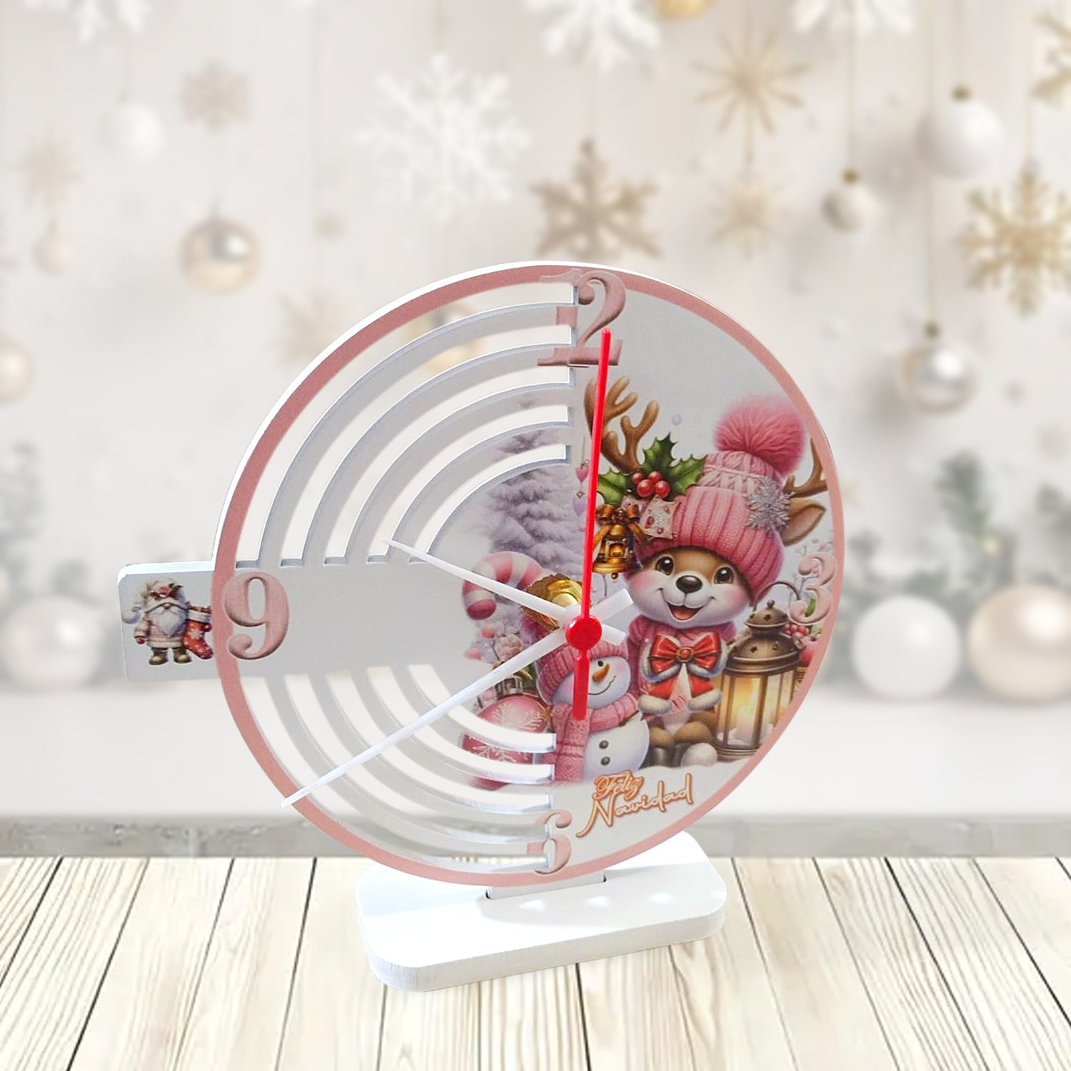Reloj de Mesa Reno Rojo y Blanco 20x20cm Circular Analogo de Baterias