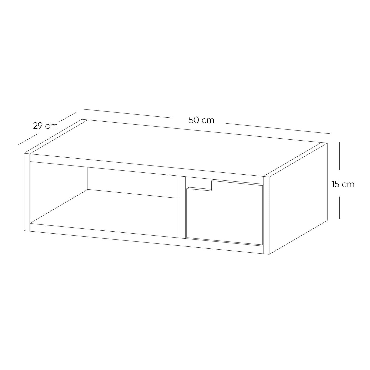Repisa Trento Madera Natural y Blanco 50x15cm Rectangular con Un Cajón