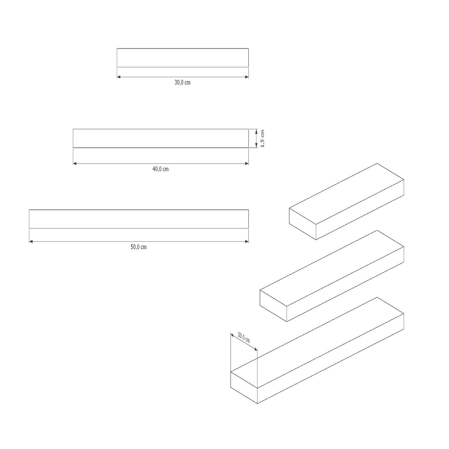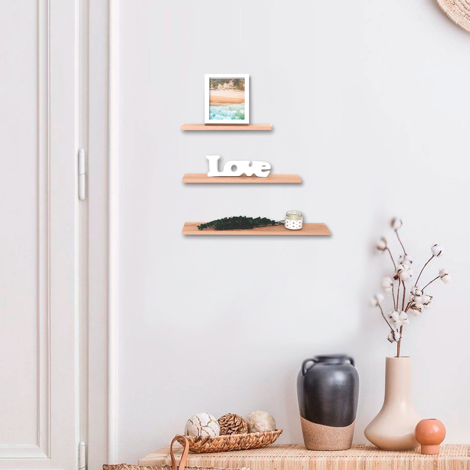 Set de 3 Repisas Balluci Cafe Claro Rectangular Flotantes de Diferentes Medidas