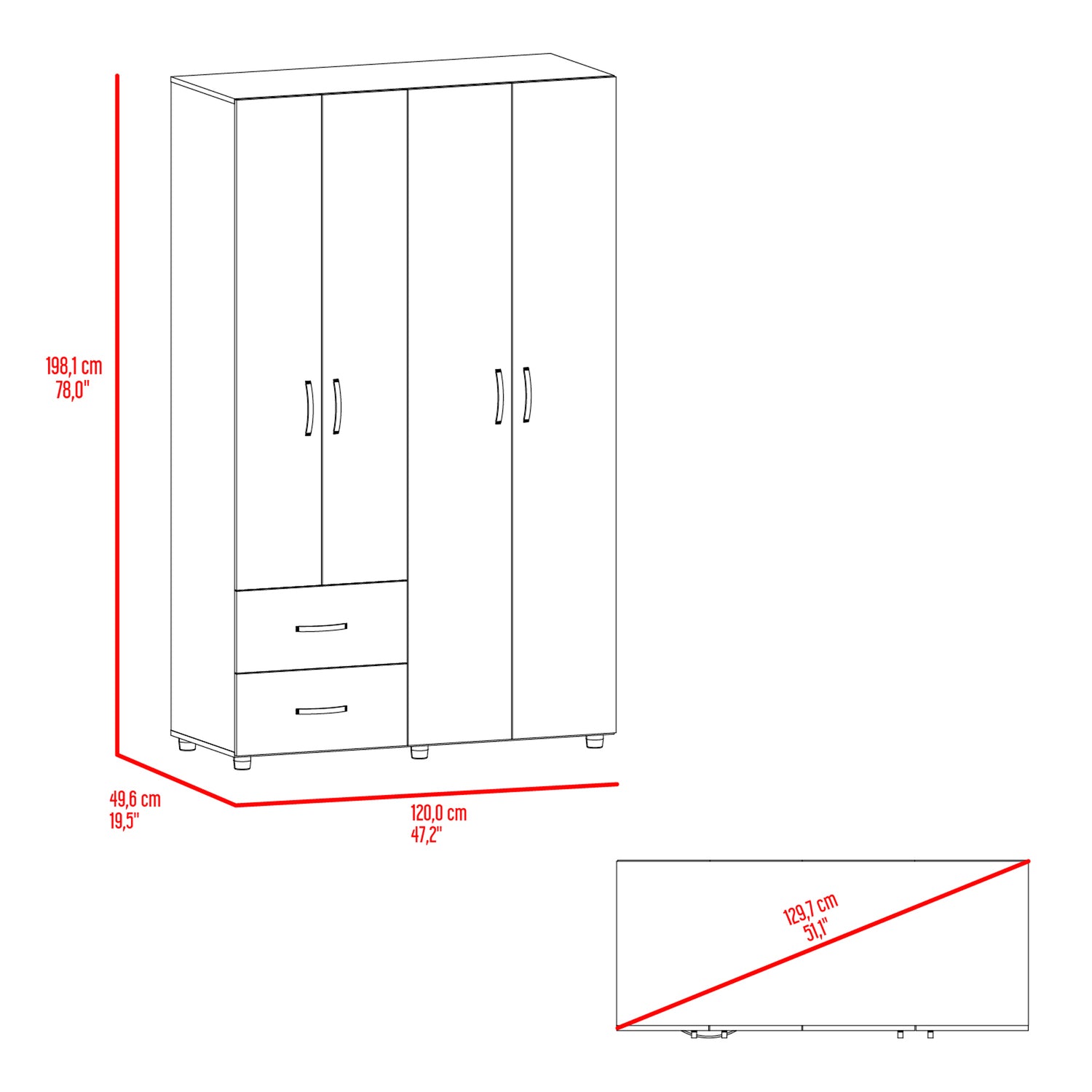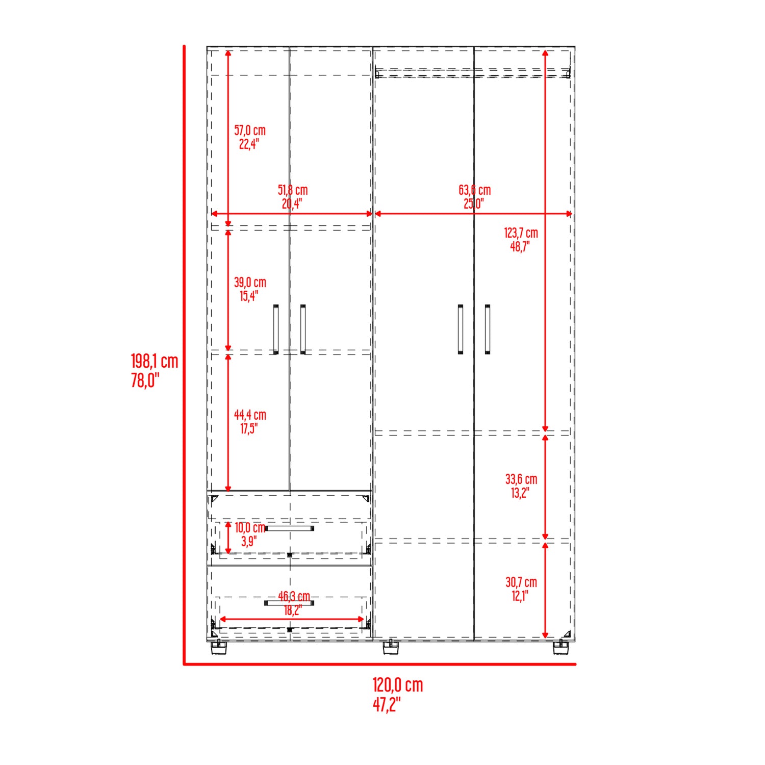 Closet Barilo Wengue 120x200cm Con Dos Cajones y Cuatro Entrepaños