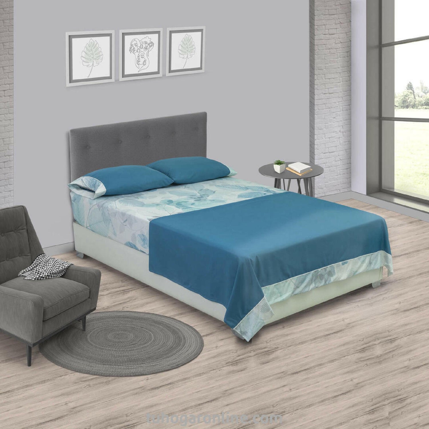 Juego de Sabanas Bruselas Estampado Floral Azul Turquesa Microfibra.