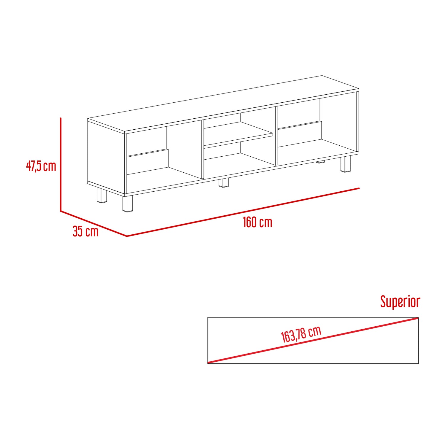 Rack de TV Tunez Blanco Marquez 160x47.5cm Para TV Hasta 70 Pulgadas sin Cajones y con Patas