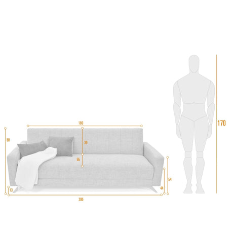 Sofá Dominic Gris 206x80cm de Tres Puestos Recinable con Apoya Brazos