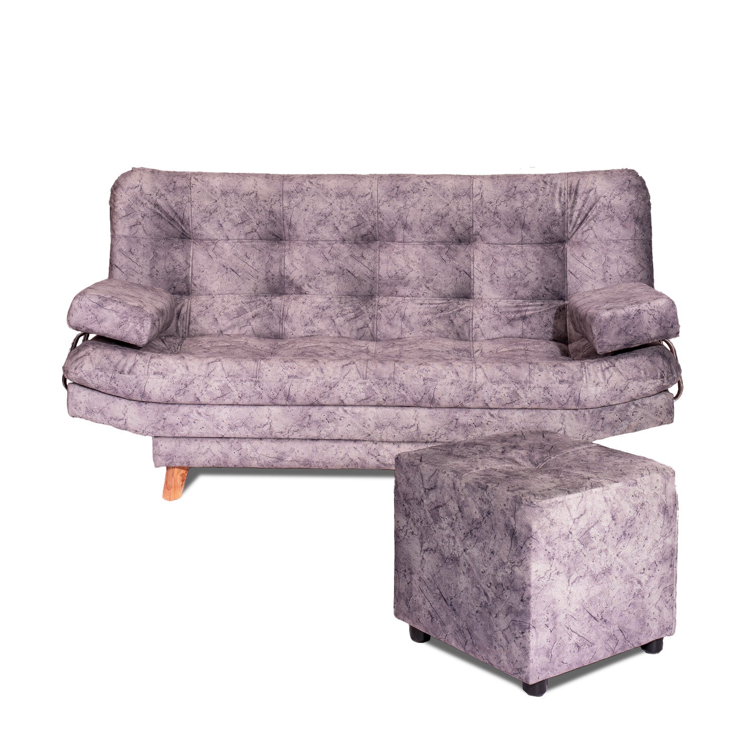 Combo Sofá Cama y Puff Valencia Mármol Plata 180x85cm De Tres Puestos Antifluido con Patas