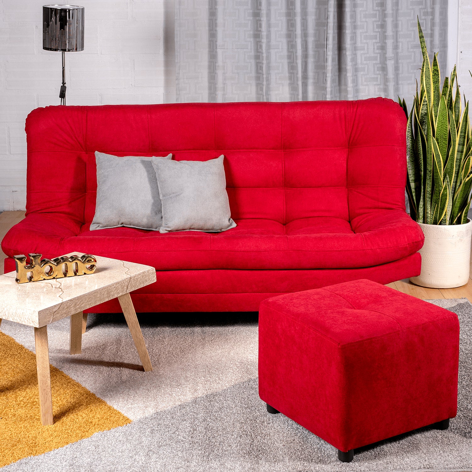 Combo Sofá Cama y Puff Valencia Rojo 180x85cm De Tres Puestos Antifluido con Patas