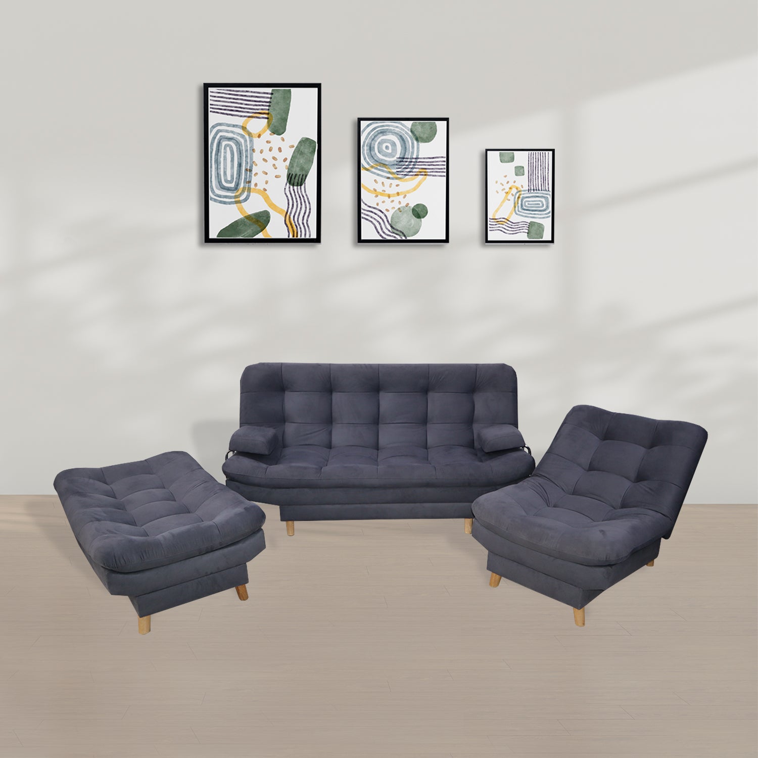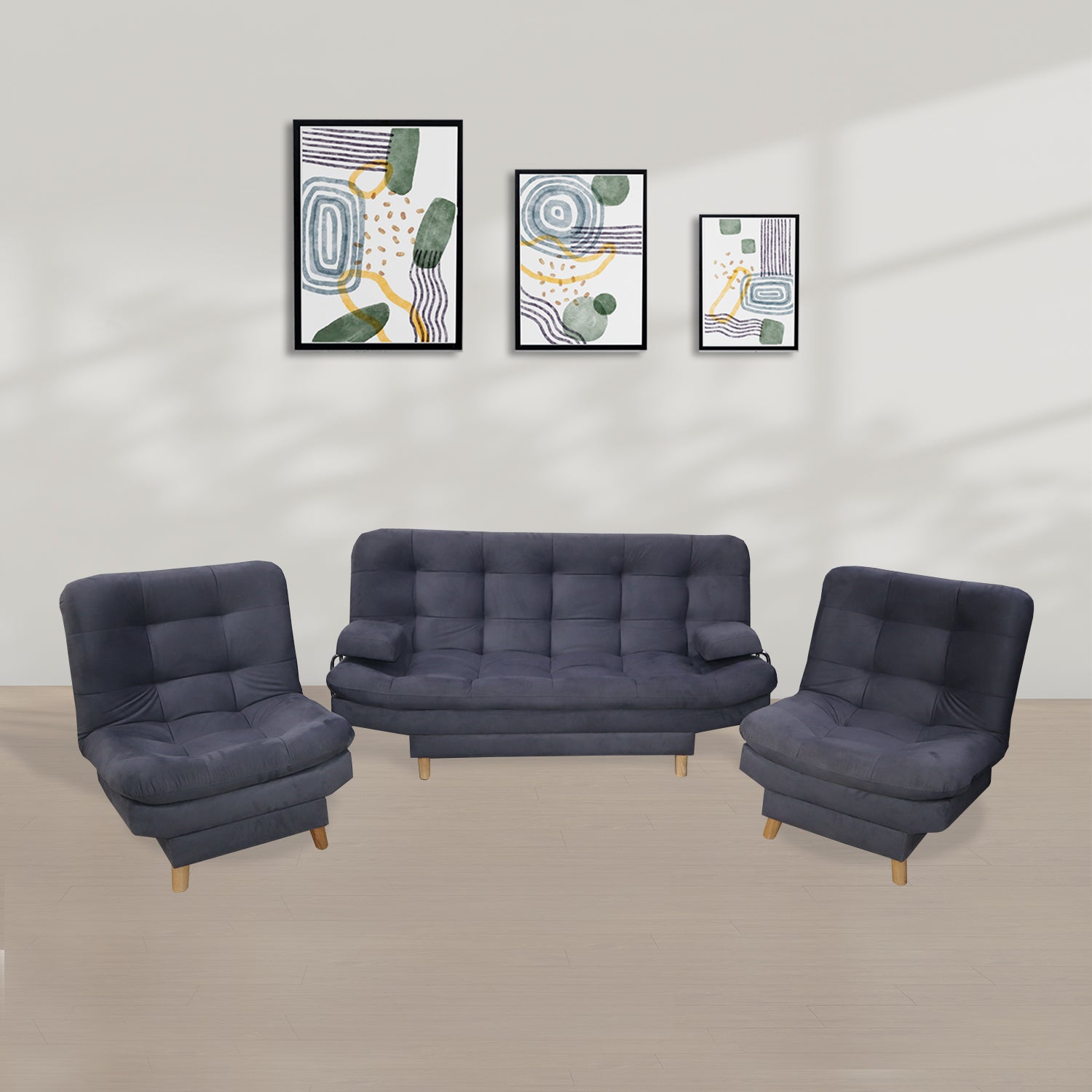 Sala Hauser Gris 185x90cm con Sofacama y Dos Sillas