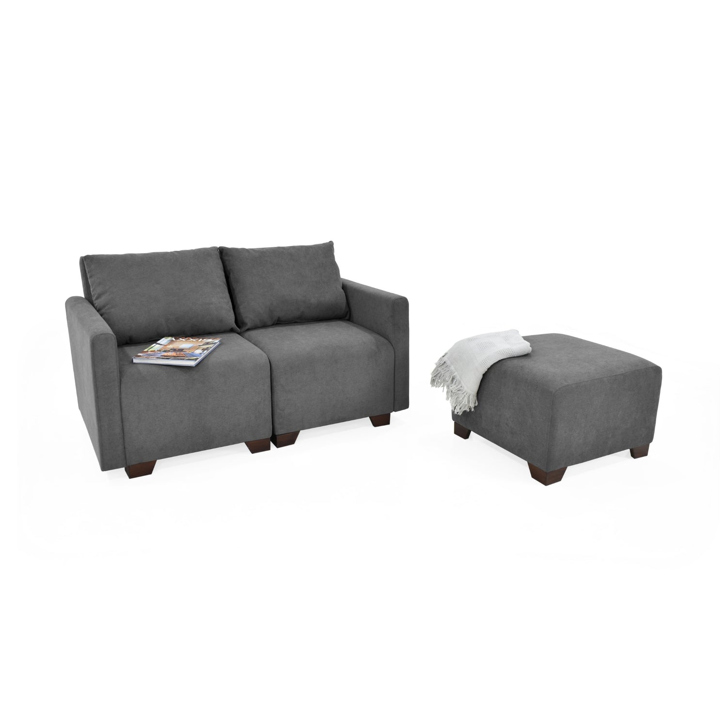 Sala Modular Alcala Gris 70x80cm de Tres Puestos con Apoya Brazos y Puff