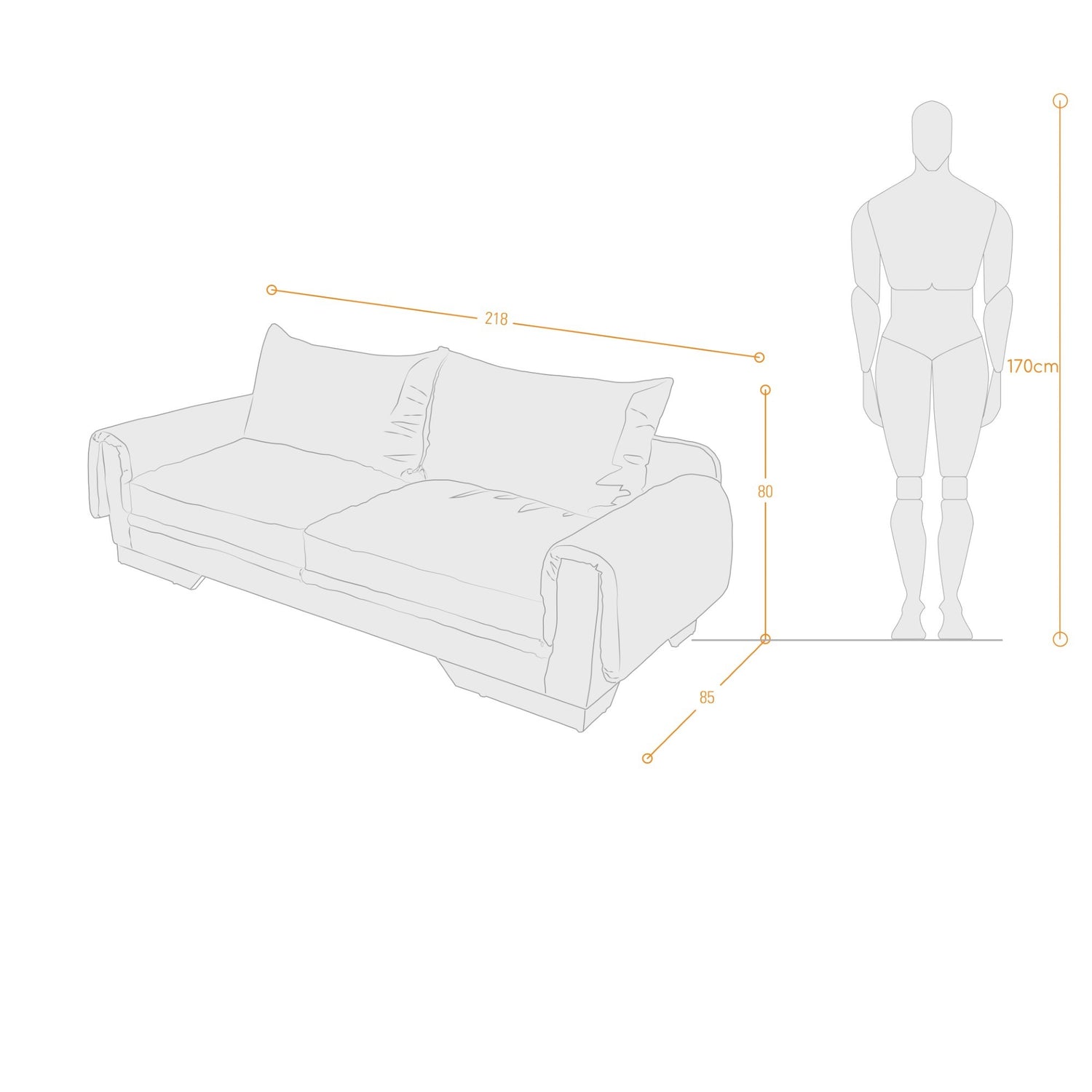 Sofá Daytona Plomo 218x80cm de Tres Puestos con Apoya Brazos